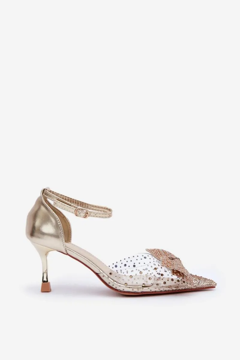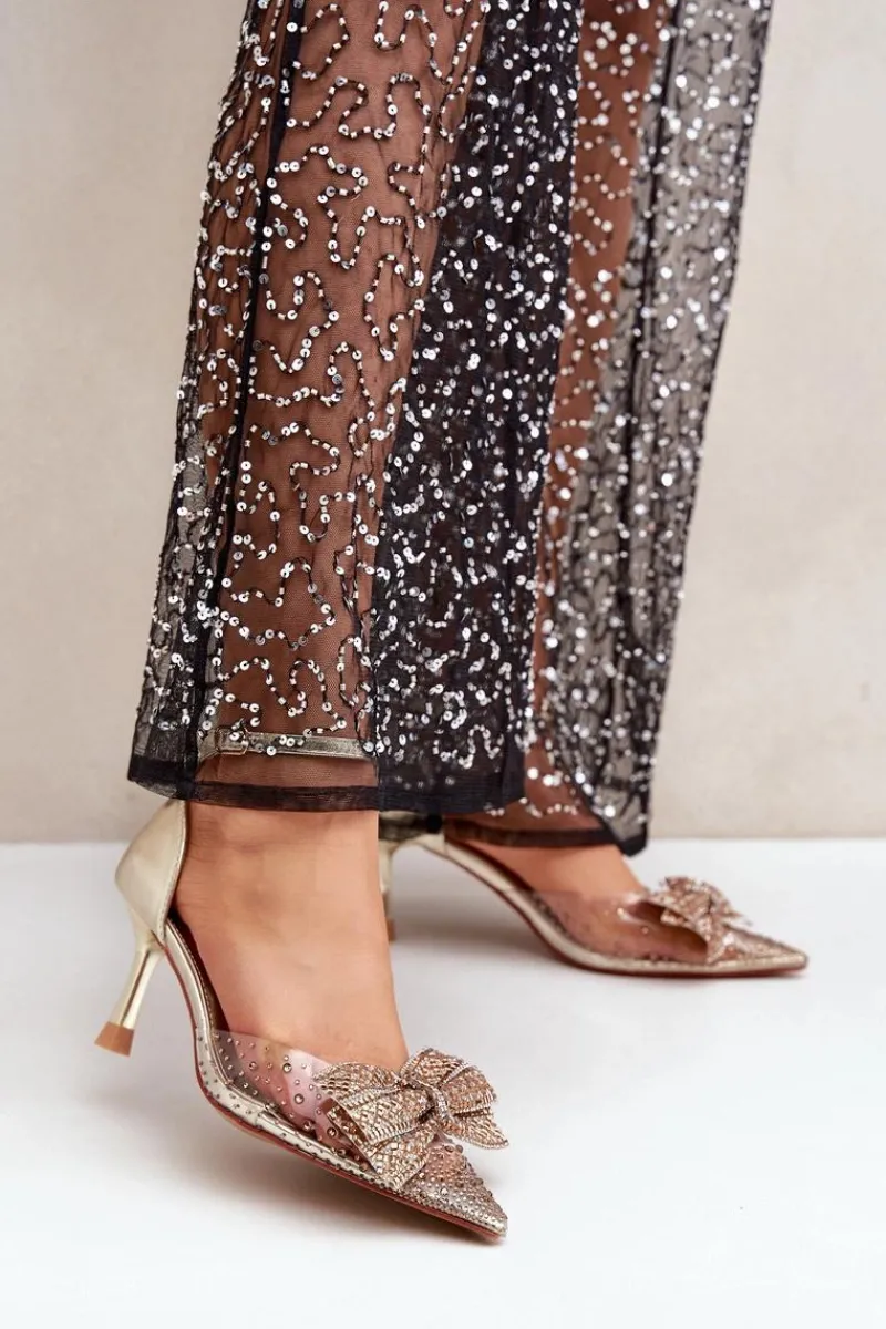 Stylowe szpilki damskie ozdobione efektowną kokardą z przodu, która nadaje im wyjątkowego uroku. Model z noskami w szpic, które optycznie wysmuklają nogi. Zapinane na regulowany pasek ze sprzączką, co zapewnia idealne dopasowanie i wygodę noszenia. Eleganckie i kobiece, doskonałe na wieczorowe wyjścia i specjalne okazje. Przy wyborze rozmiaru prosimy sugerować się tabelą rozmiarów.