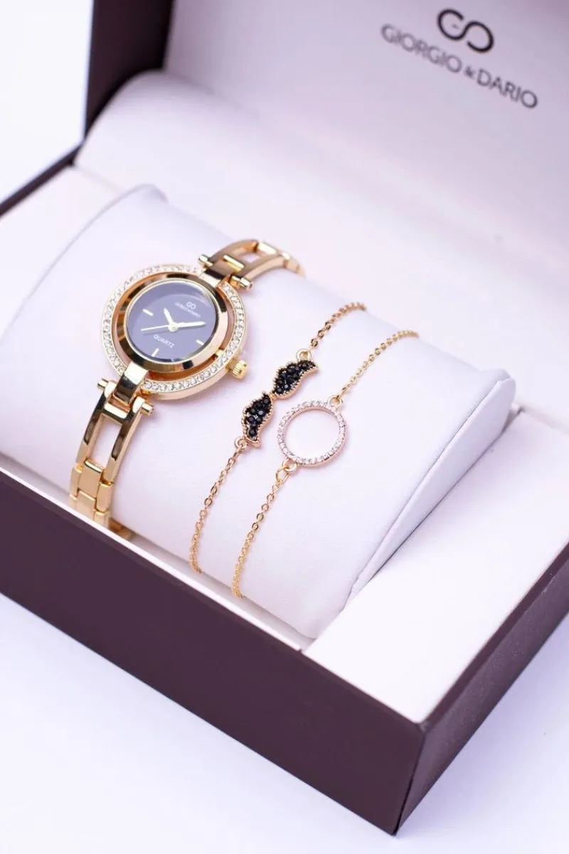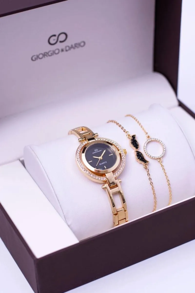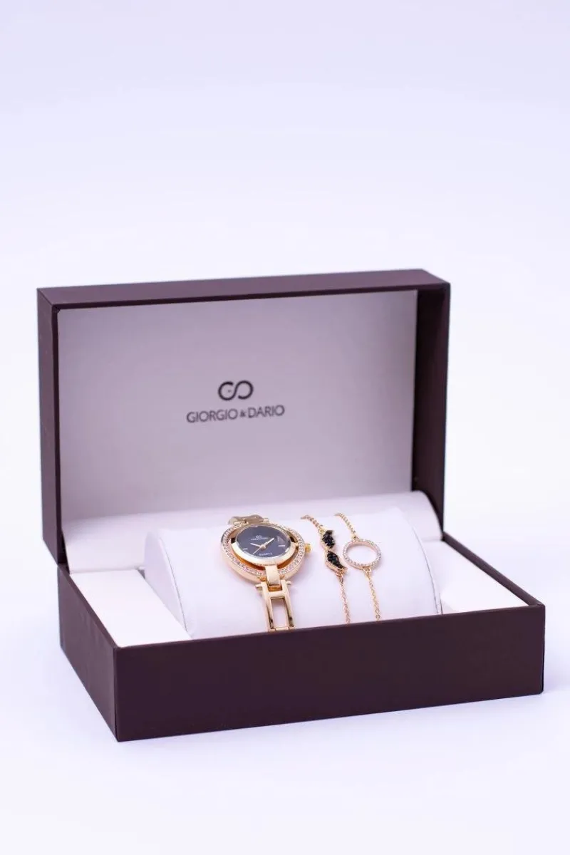 Sale Zestaw Giorgio Dario Złoty Zegarek Kryształy Dwie Bransolety Zegarki