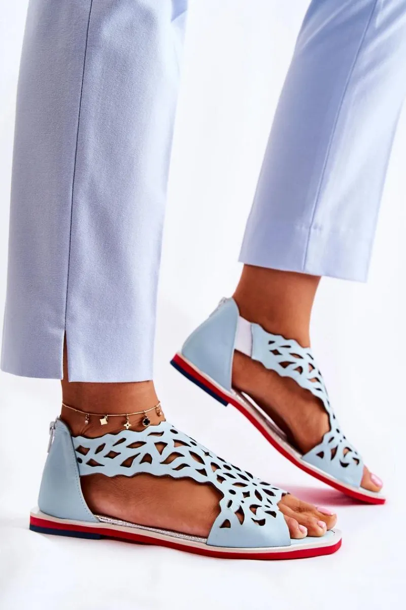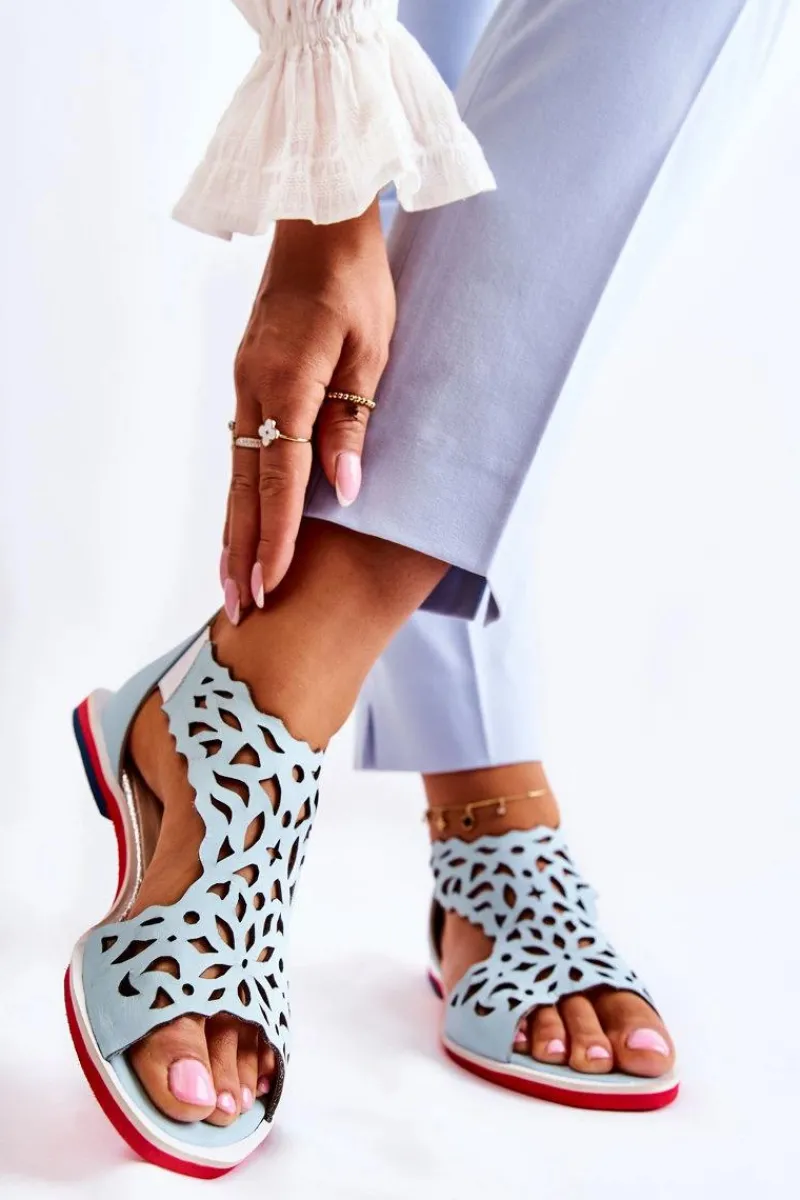 Damskie sandały zostały wykonane z naturalnej skóry w ażurowy wzór. Z boku cholewki posiadają gumkę. Zapiętek usztywniany z suwakiem. Buty są osadzone na płaskim obcasie. Sandały posiadają odkryty nosek. Miękka wkładka została także wykonana z naturalnej skóry. Lekki i przewiewny fason świetnie sprawdzi się w upalne dni. Koniecznie powinnaś je mieć! Przy wyborze rozmiaru prosimy sugerować się tabelą rozmiarów.