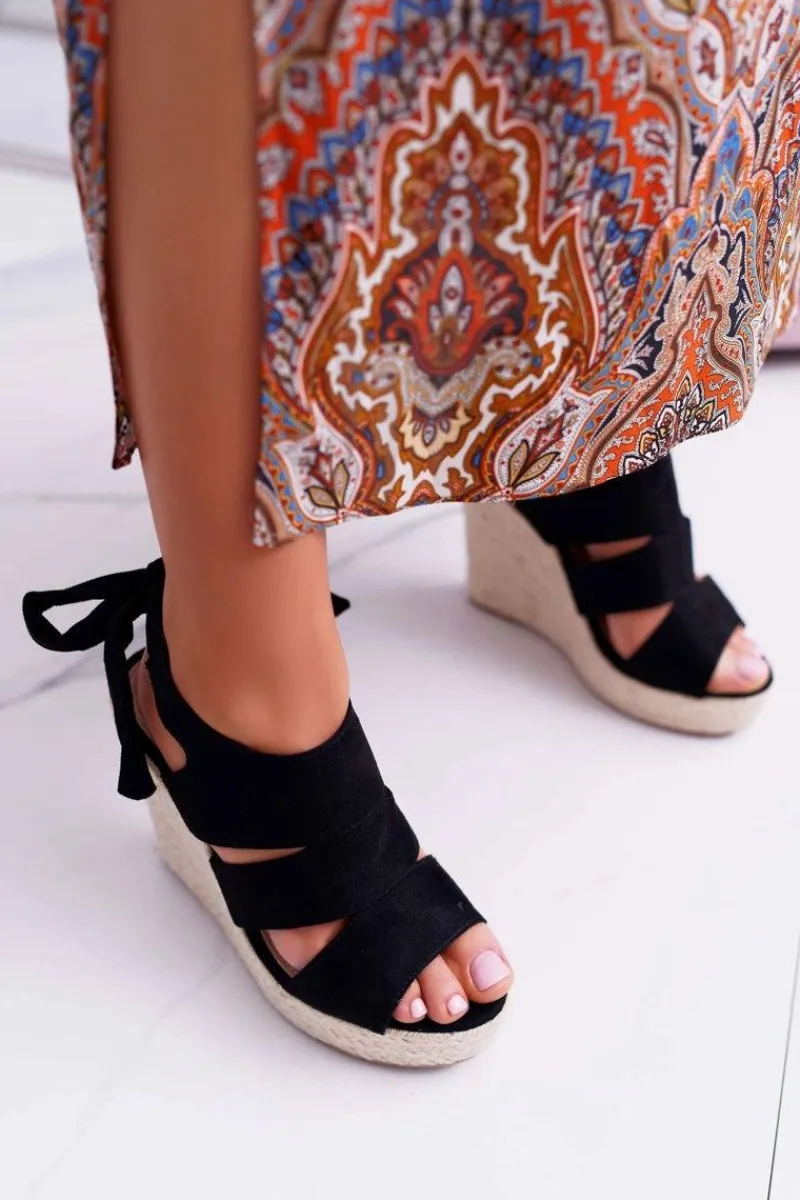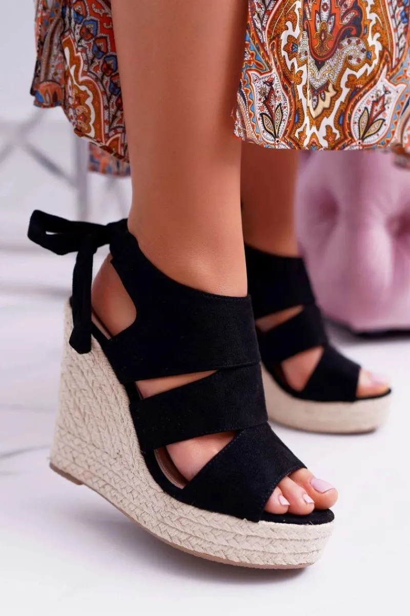 Sandały Damskie Na Koturnie Czarne Yenga Damskie Sandały Na Koturnie