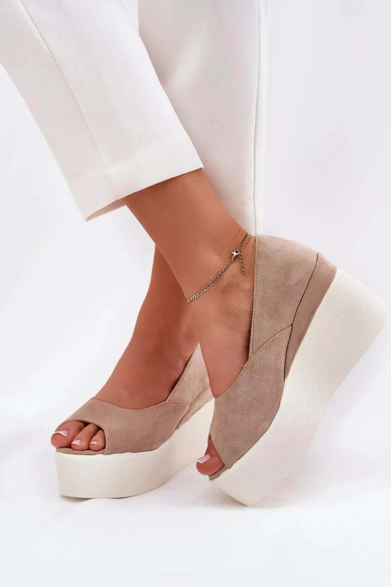 Sandały damskie wykonane z eko zamszu, osadzone na platformie i koturnie, łączą styl z wygodą. Ich lekka konstrukcja zapewnia komfort przez cały dzień, a zakryte pięty dodają stabilności. Doskonałe na letnie dni, idealnie pasują do sukienek, spódnic i spodni, tworząc modny i komfortowy zestaw na co dzień. Przy wyborze rozmiaru prosimy sugerować się tabelą rozmiarów.