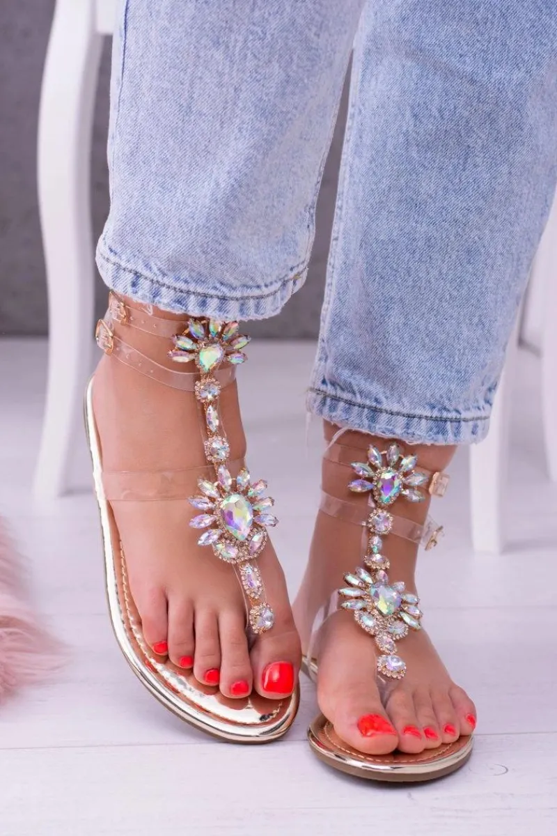 Sandały Gumowe|Sandały Płaskie>Boto Tanie Buty Lu Boo Eleganckie Transparentne Sandały Cyrkonie Nomire