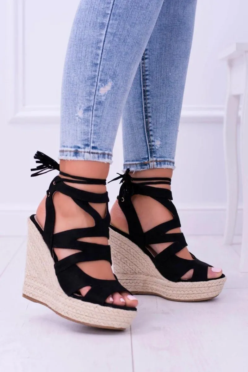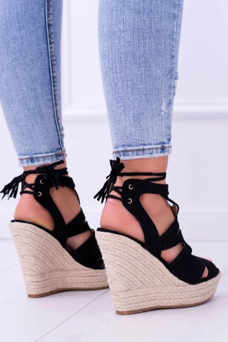 Sandały Na Koturnie>Boto Czarne Zamszowe Sandały Na Koturnie Nowelio