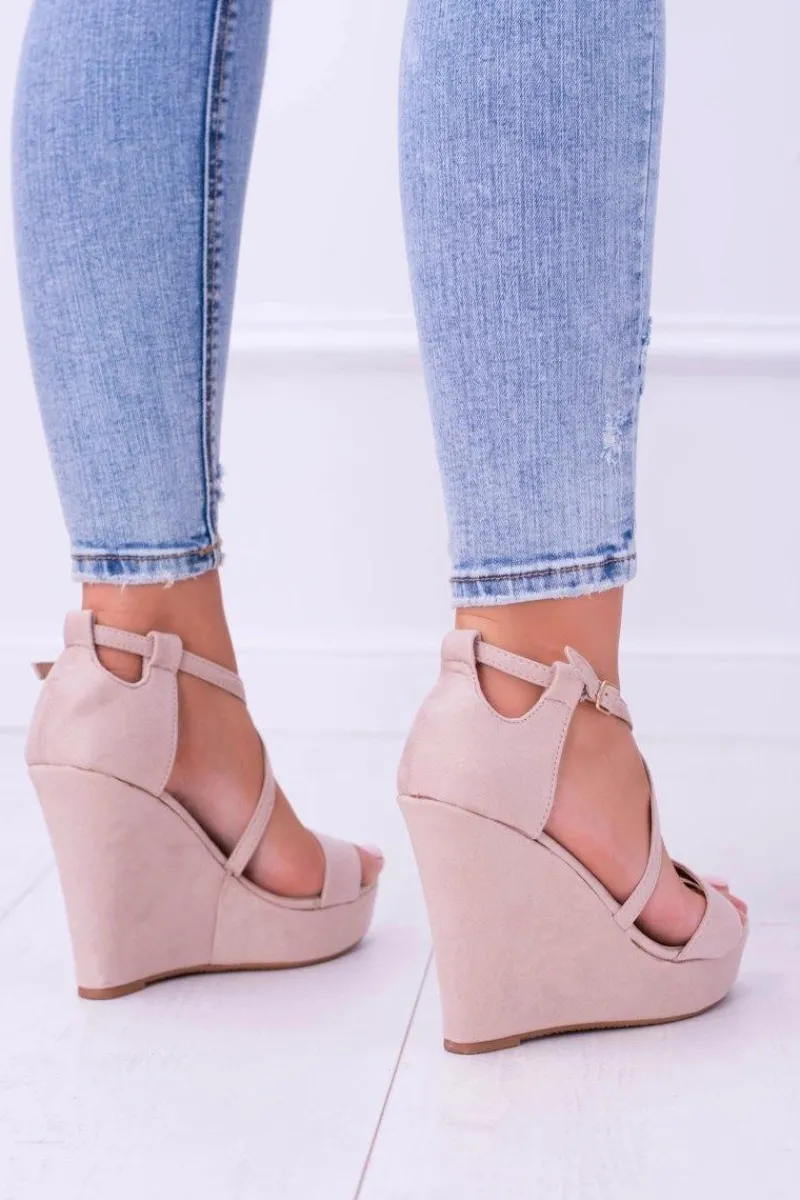Sandały Na Koturnie>Boto Damskie Beżowe Zamszowe Sandały Na Koturnie Eline