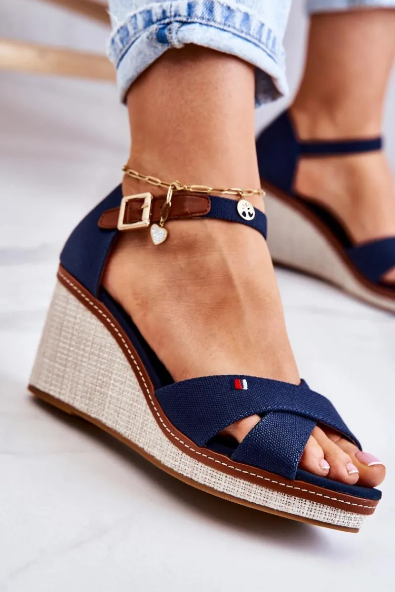 Wyjątkowe sandały na koturnie z plecionką. Buty zostały wykonane z materiału tekstylnego. Zapiętek usztywniany. Miękka wkładka wykonana z połączenia eko skóry oraz materiału tekstylnego zadba o Twój komfort podczas użytkowania. Zapinane wokół kostki na regulowany pasek ze sprzączką. Zdobienie nicią na jednym z pasków. Buty posiadają odkryte palce i zakrytą piętę. Dzięki takiemu obcasowi buty są stabilniejsze od tradycyjnych szpilek. Świetny model na letnie dni! Przy wyborze rozmiaru prosimy sugerować się tabelą rozmiarów.