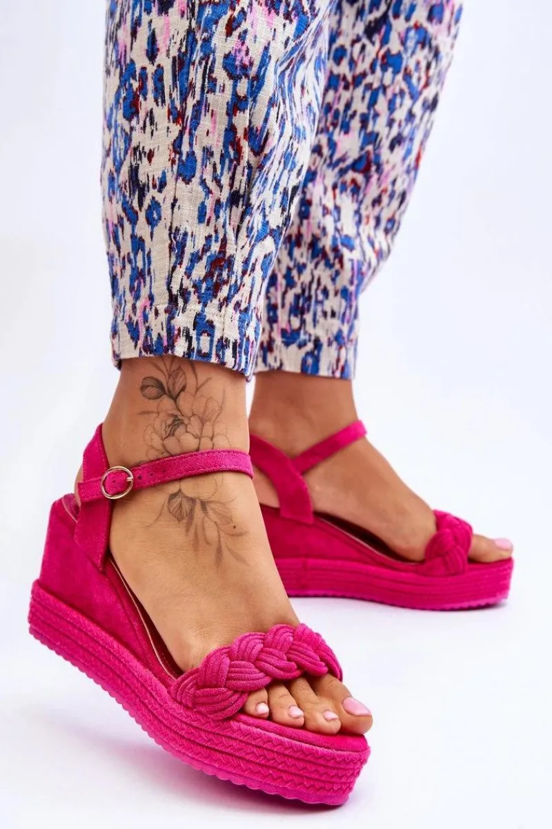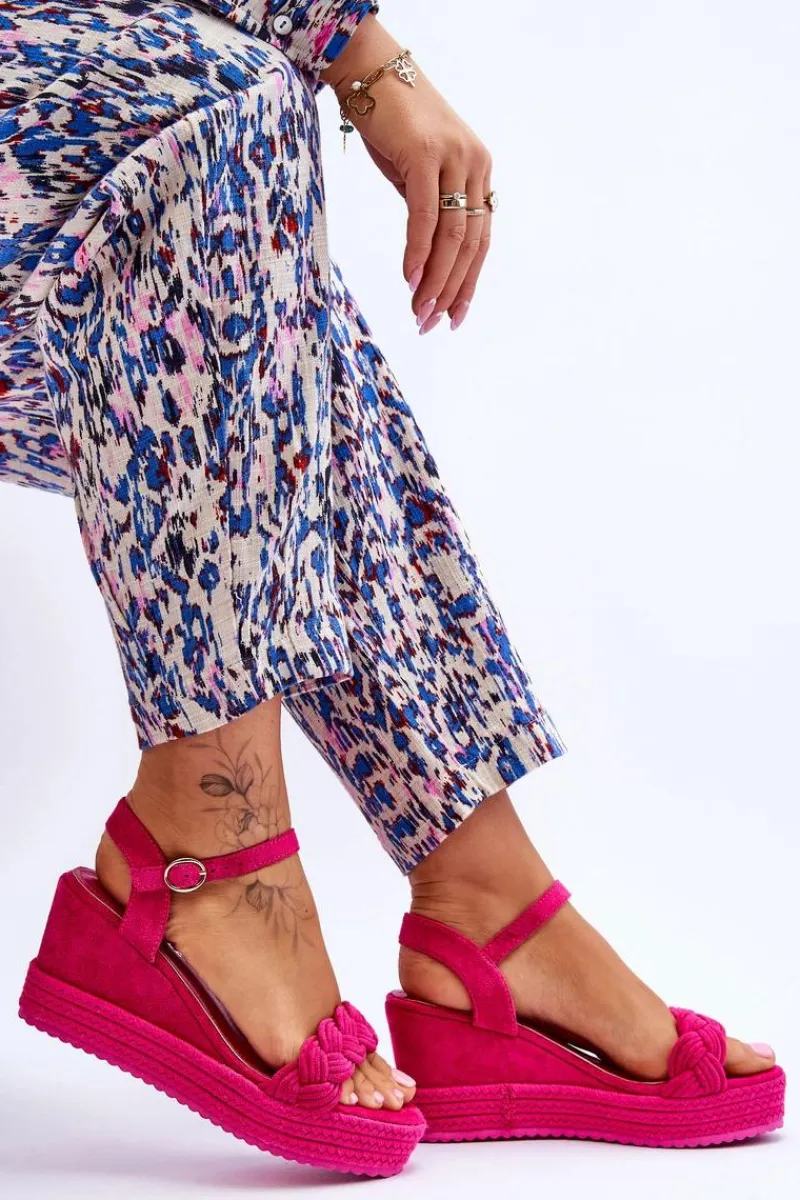 Sandały Na Koturnie>Boto Klasyczne Zamszowe Sandały Na Koturnie Fuksja Denisse