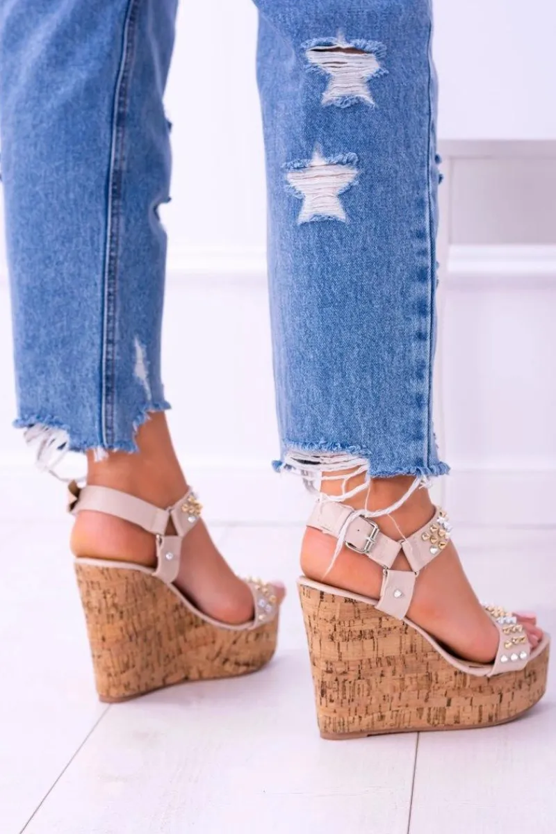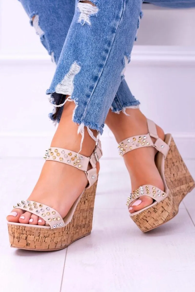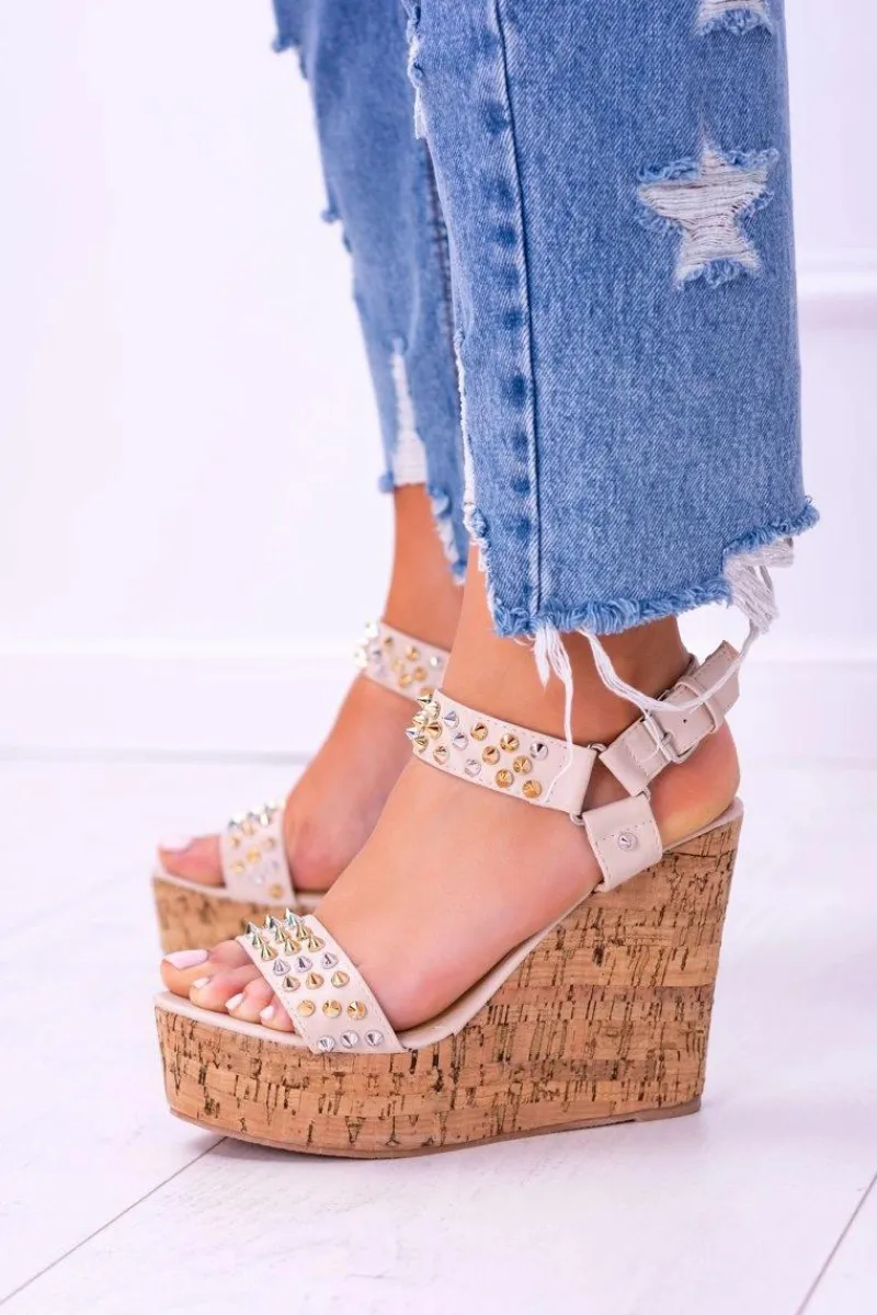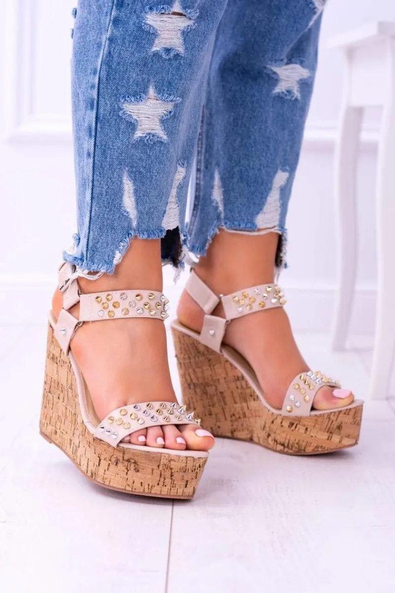 Sandały Na Koturnie>Boto Lu Boo Beżowe Damskie Sandały Na Koturnie Ćwieki Valeria