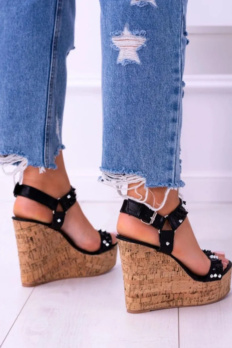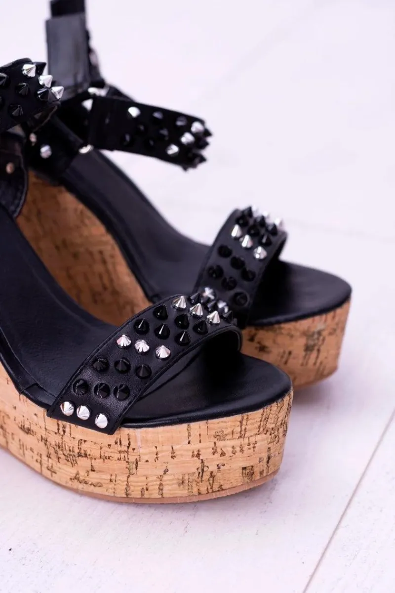 Sandały Na Koturnie>Boto Lu Boo Czarne Damskie Sandały Na Koturnie Ćwieki Valeria