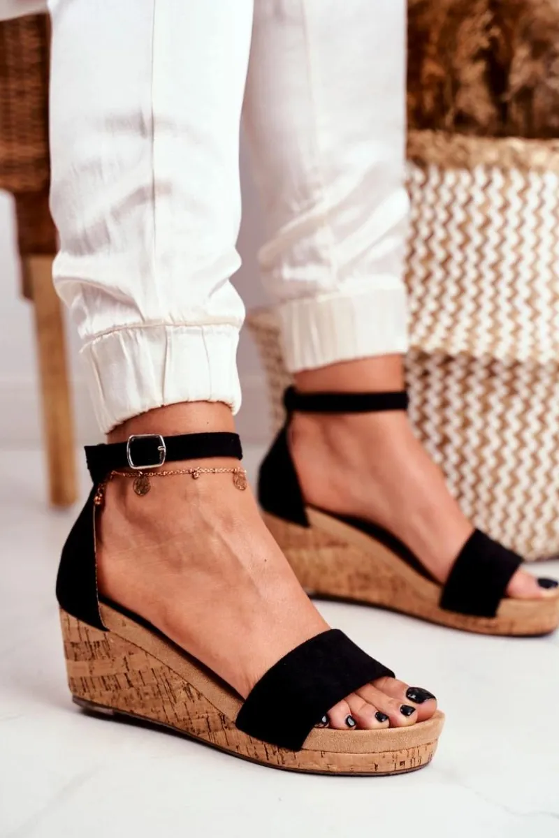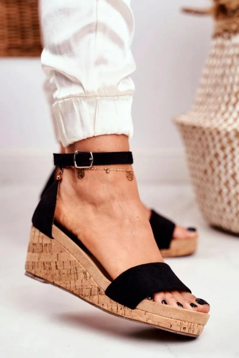 Pragniesz poczuć się stabilnie i wygodnie w wysokich sandałkach? Mamy dla Ciebie takie buty! Tylko spójrz na ten wysokiej jakości ekologiczny zamsz, znajdujący się zarówno po wewnętrznej, jak i zewnętrznej stronie obuwia. Gwarantujemy, że nigdy nie trzymałaś w dłoni tak przyjemnego w dotyku materiału. Dodatkowo pod piętą znajduje się miękki podpiętej ze skóry ekologicznej. To wszystko sprawi, że spacer w tych sandałkach będzie przyjemnością, nawet ten w „biegu”. Spraw swoim stopom nieco przyjemności i elegancji. Przy wyborze rozmiaru prosimy sugerować się tabelą rozmiarów.