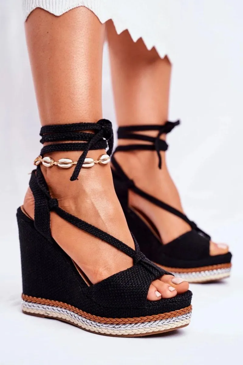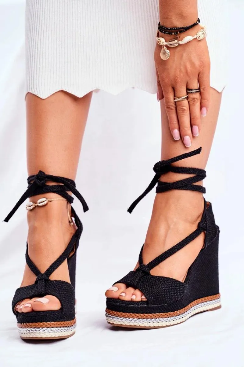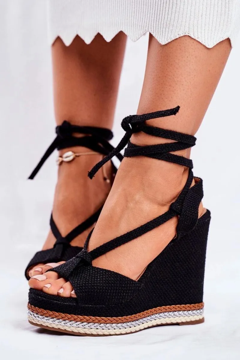 Sandały Na Koturnie>Boto Sandałki Damskie Na Koturnie Wiązane Czarne Sydney