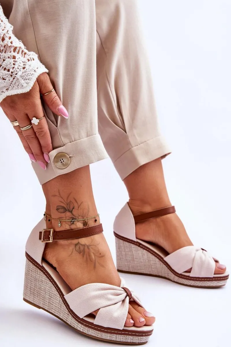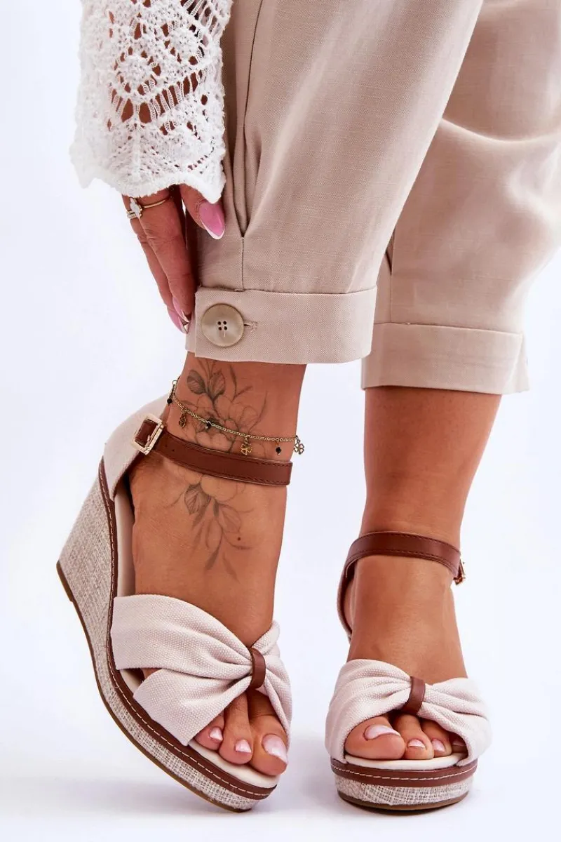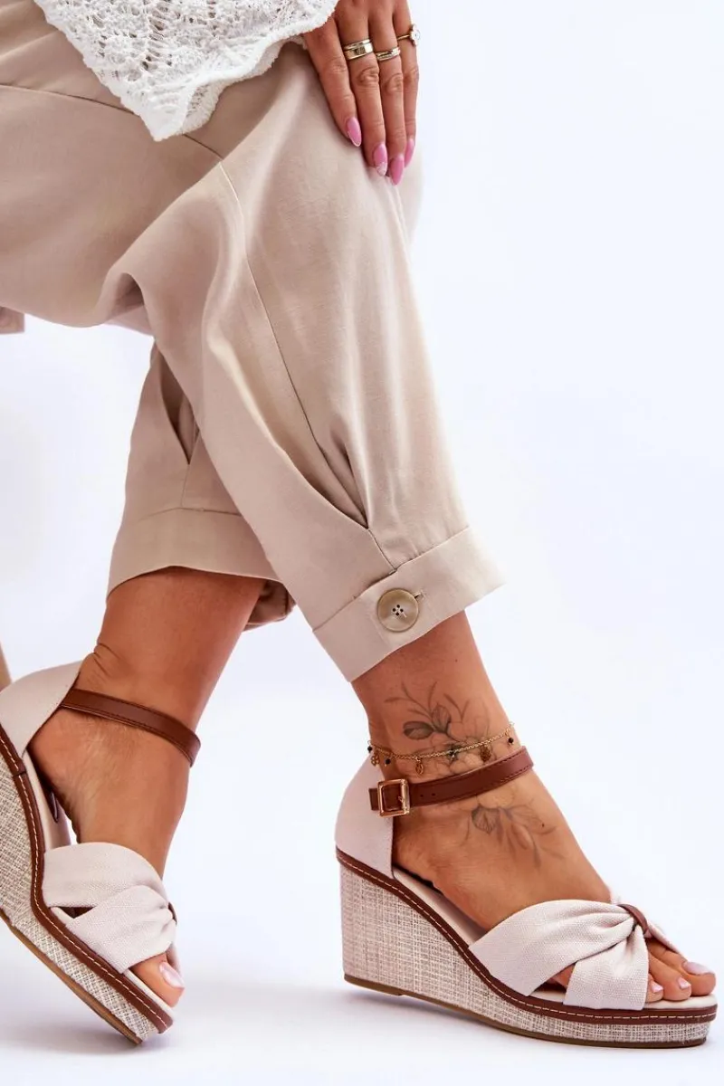 Wygodne sandały na modnym koturnie to klasyka wśród damskiego, letniego obuwia. Wkładka oraz wierzch wykonane zostały z tkaniny. Zapiętek został wzmocniony. Buty posiadają zapięcie na regulowany pasek ze sprzączką. Podeszwa w tych sandałkach jest wykonana z tworzywa i jest antypoślizgowa. Te sandały to idealny wybór do letnich stylizacji. Przy wyborze rozmiaru prosimy sugerować się tabelą rozmiarów.
