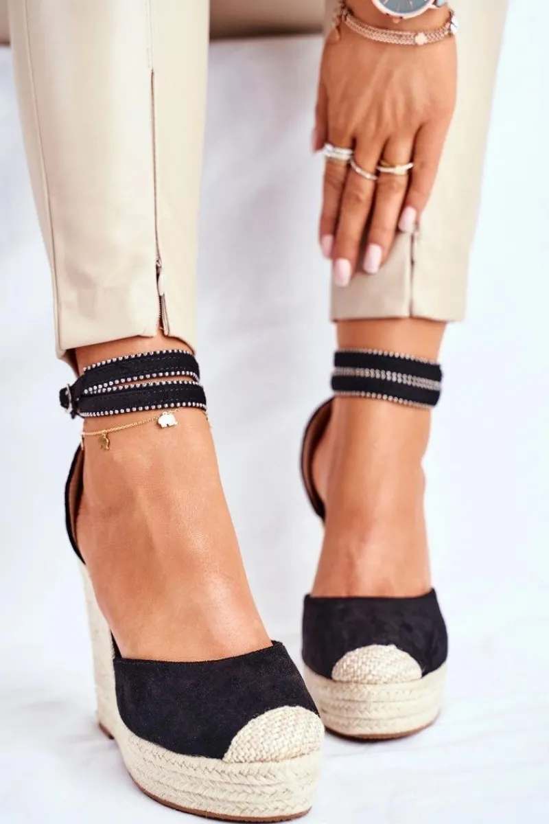 Sandały Na Koturnie>Boto Sandały Damskie Na Koturnie Lniane Czarne Canterola