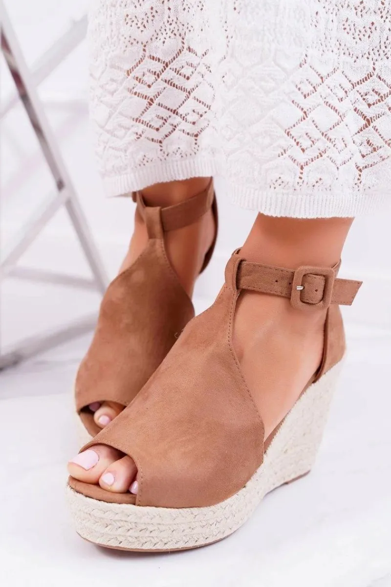 Sandały Na Koturnie>Boto Sandały Damskie Na Koturnie Platforma Camel Begest
