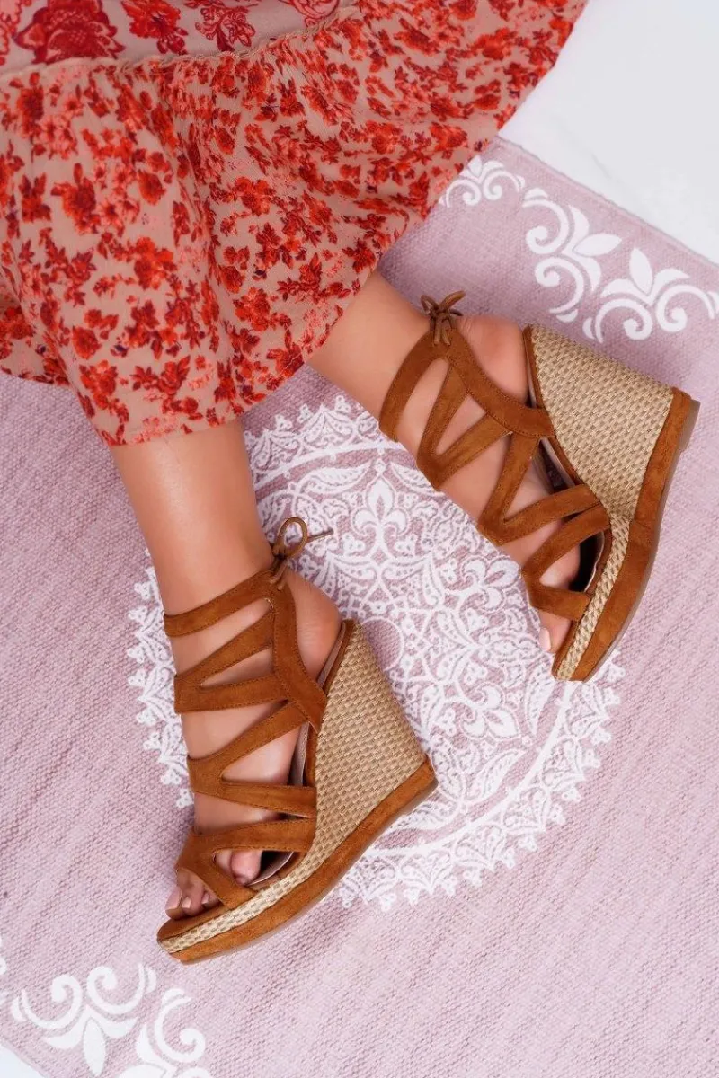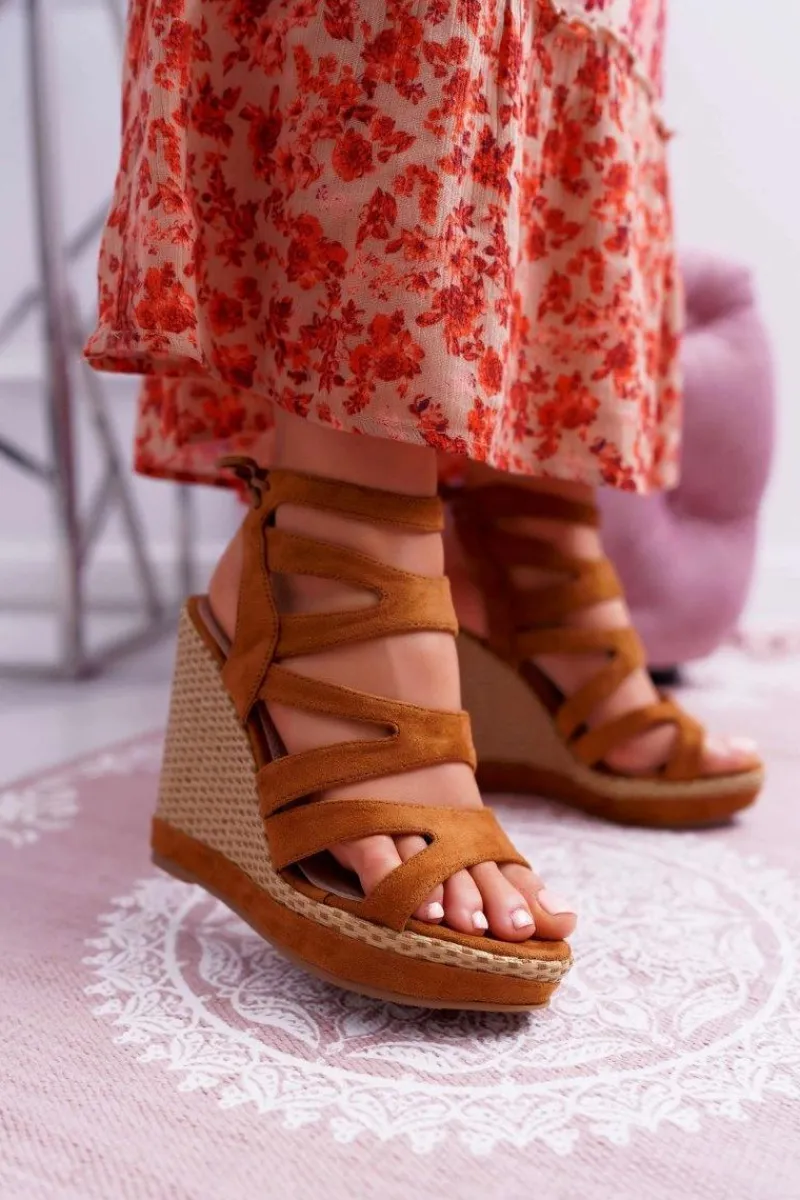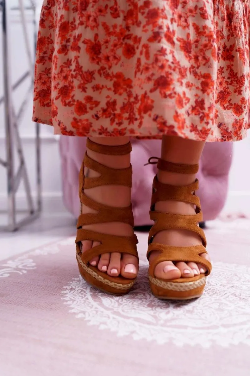 Sandały Na Koturnie>Boto Sandały Damskie Na Koturnie Sznurek Camel Liluena