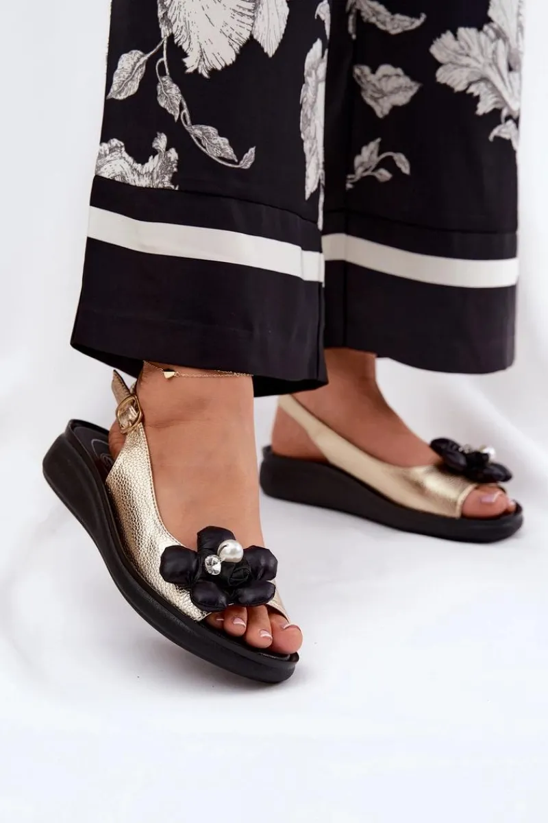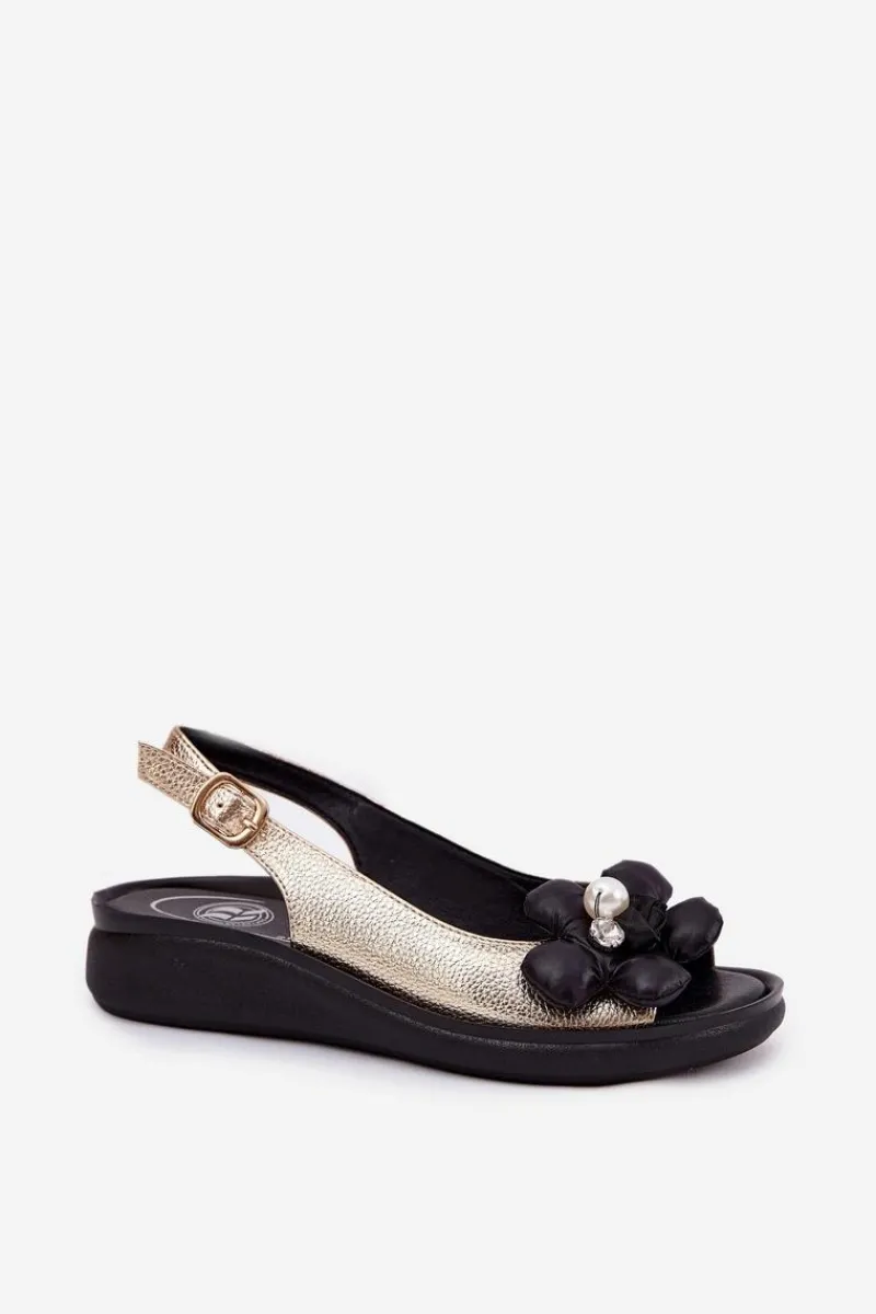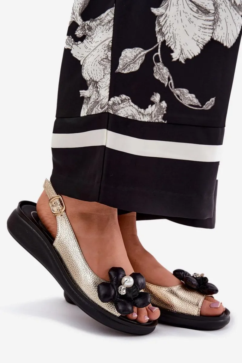Sandały damskie marki Jezzi. Wykonane z wysokiej jakości eko skóry. Osadzone na delikatnym koturnie, zapewniają stabilność i komfort podczas noszenia. Model ten wyróżnia materiałowy, ozdobny kwiat, który nadaje wyjątkowego uroku. Zapinane na regulowany pasek ze sprzączką, gwarantują idealne dopasowanie do stopy. Ten elegancki fason doskonale dopełni wiele stylizacji z sukienkami i spodniami. Koniecznie powinnaś je mieć! Przy wyborze rozmiaru prosimy sugerować się tabelą rozmiarów.