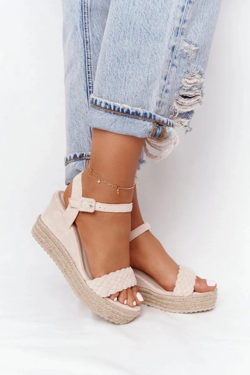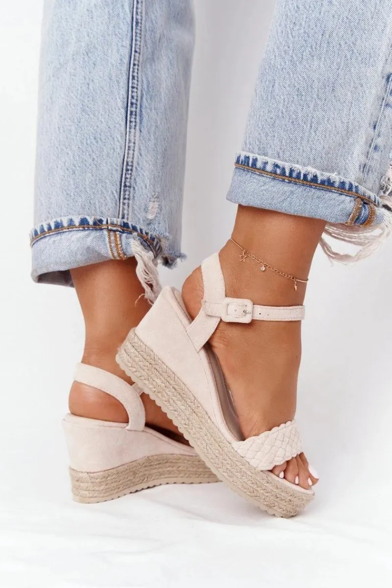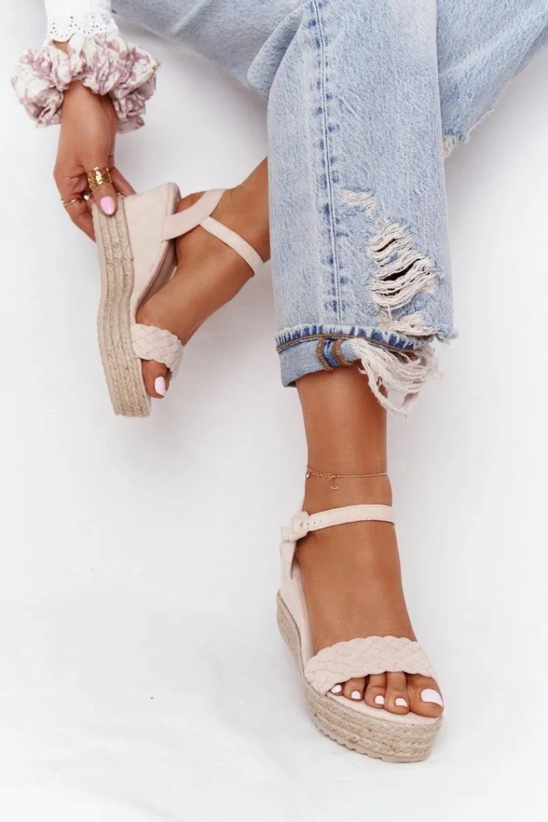 Sandały Na Koturnie>Boto Sandały Na Koturnie Z Plecionką Beżowe Baleary