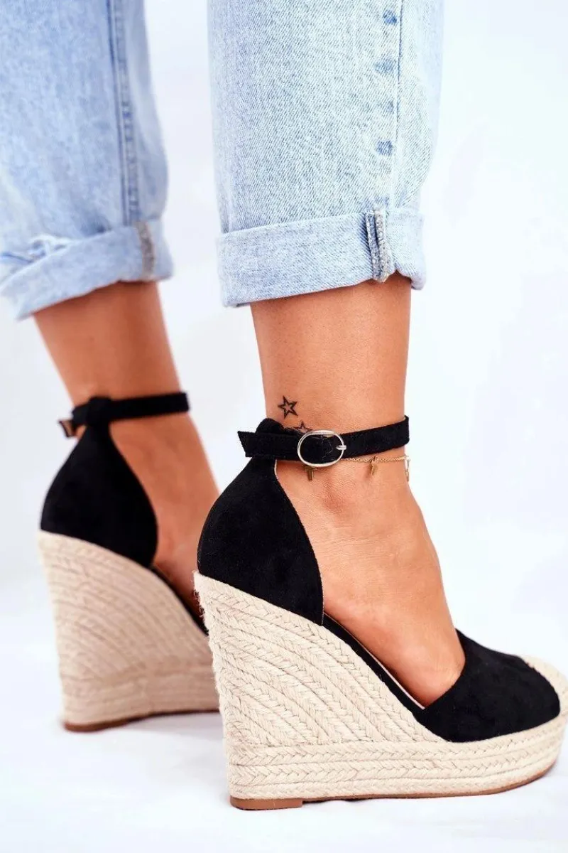 Piękne oraz wygodne sandały na koturnie wykonane z eko zamszu. Buty posiadają antypoślizgową podeszwę oraz miękką wkładkę z eko skóry. Koniecznie sprawdź całą naszą kolekcję damskich sandałów! Przy wyborze rozmiaru prosimy sugerować się tabelą rozmiarów.