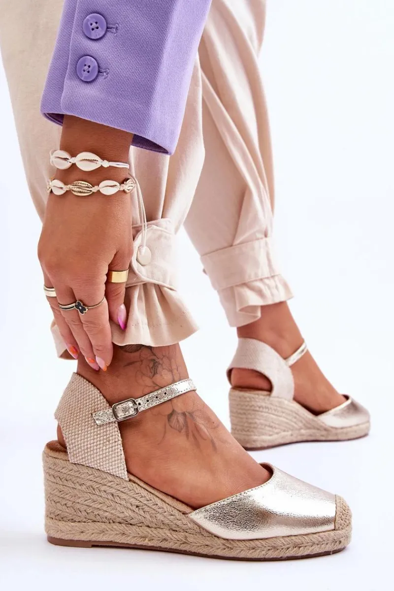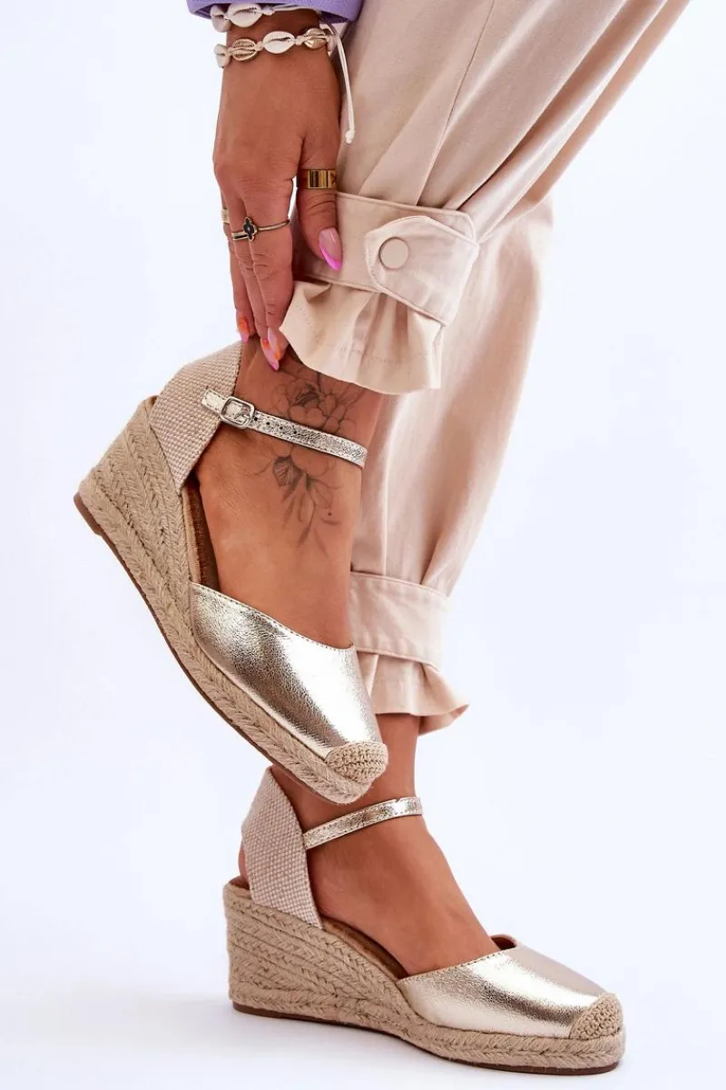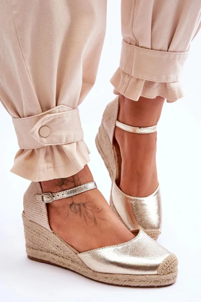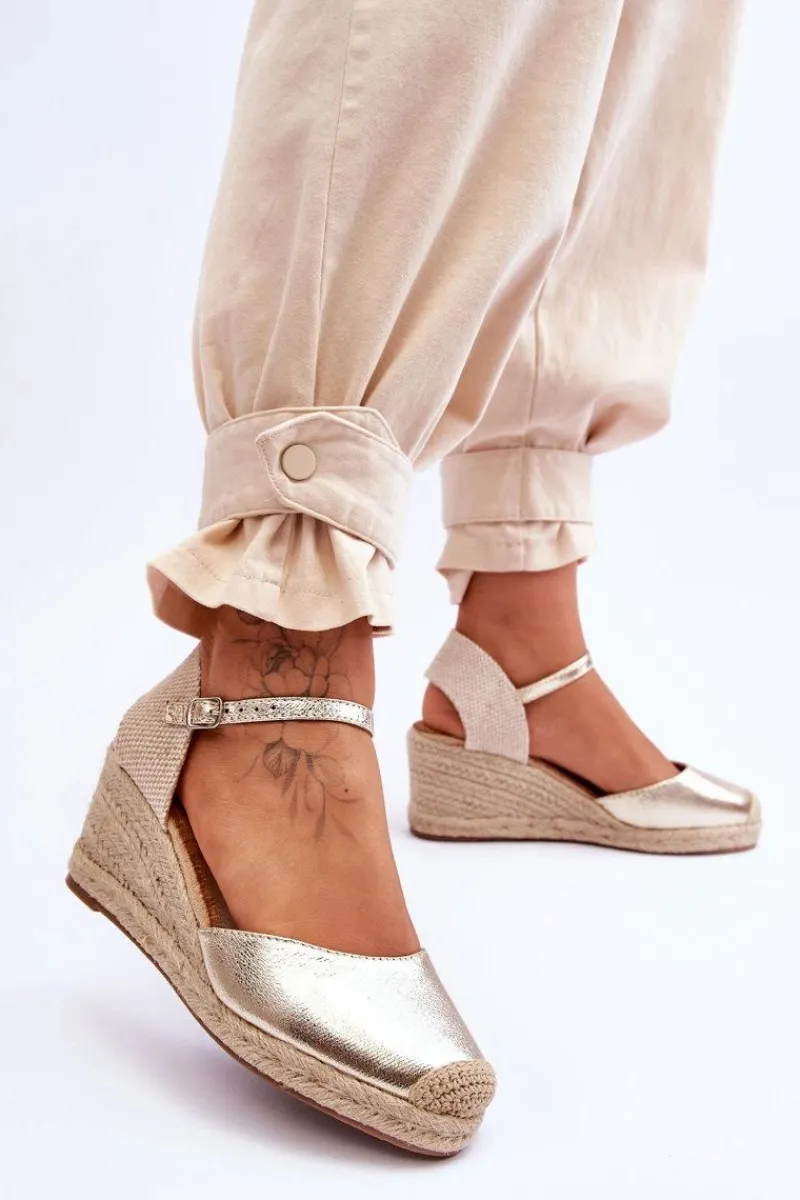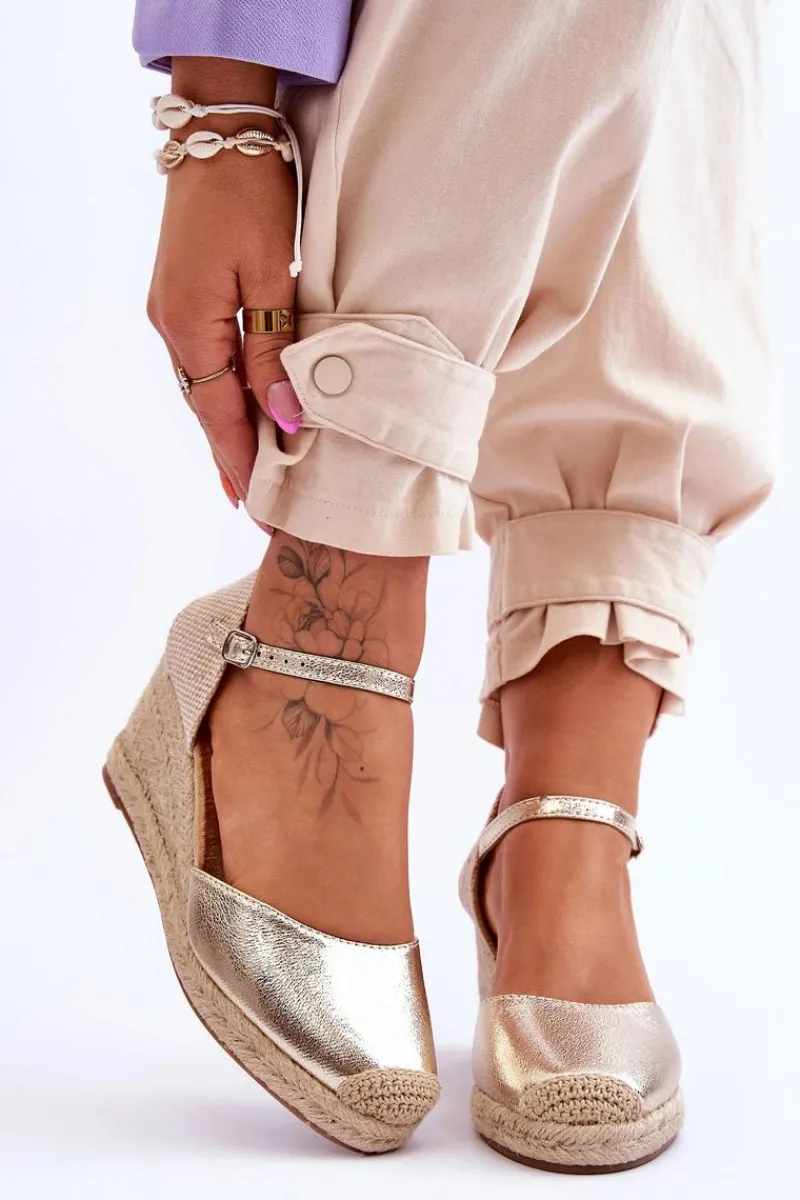 Sandały Na Koturnie>Boto Skórzane Sandałki Espadryle Na Koturnie Złote Cammer
