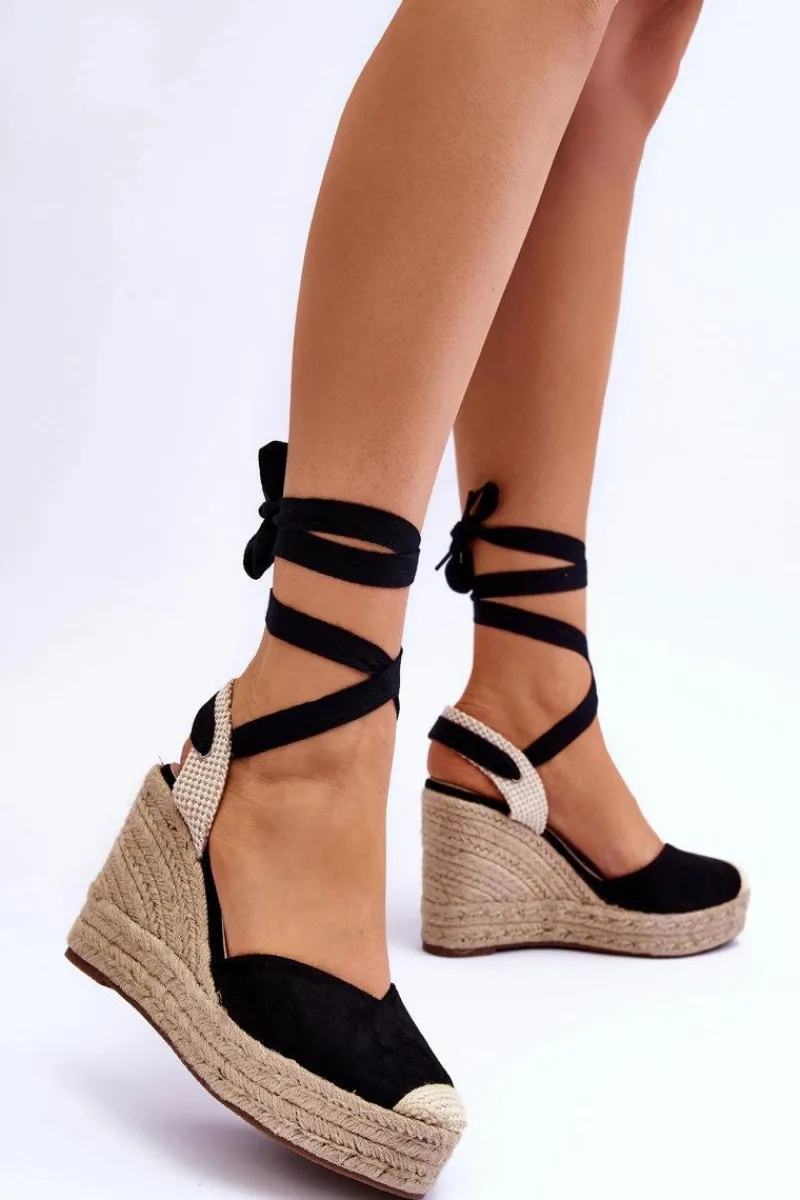 Sandały Na Koturnie>Boto Wiązane Sandały Na Wysokim Koturnie Czarne Lendy