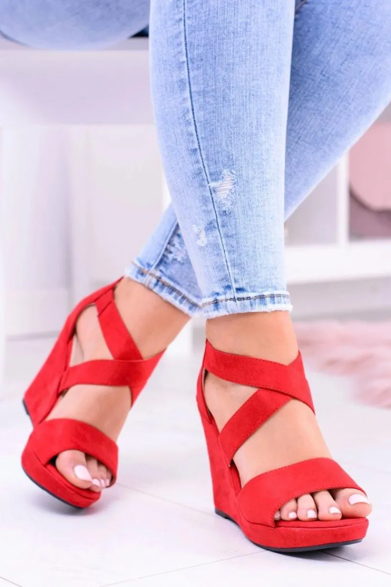 Sandały Na Koturnie>Boto Wygodne Damskie Czerwone Sandały Koturny Mirabet