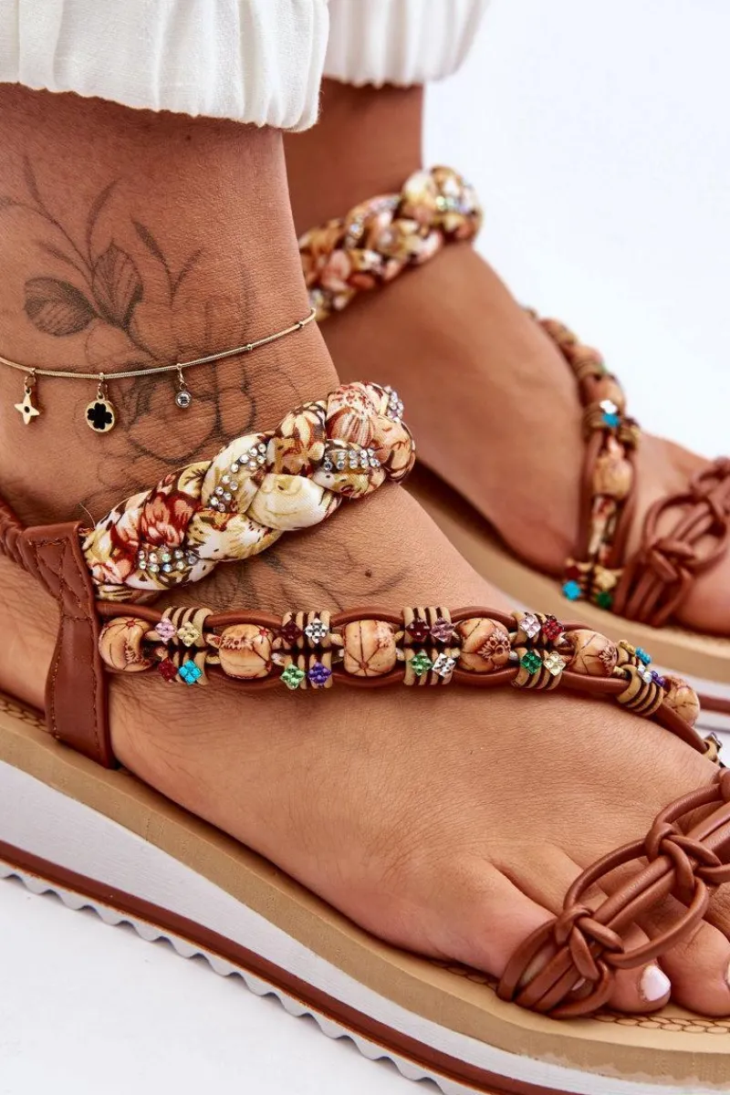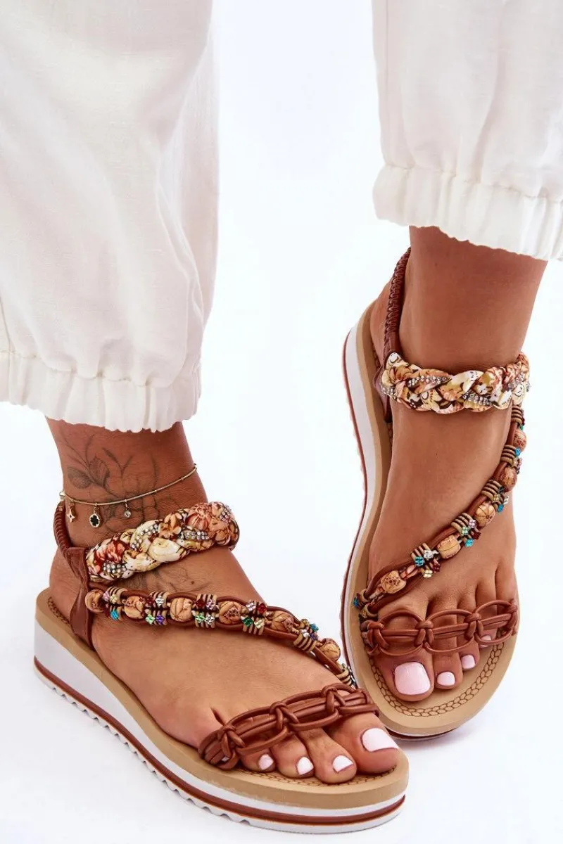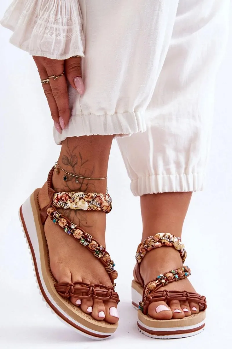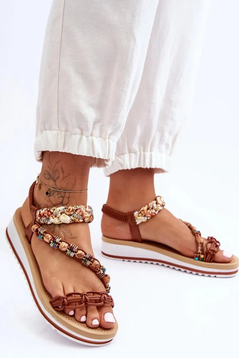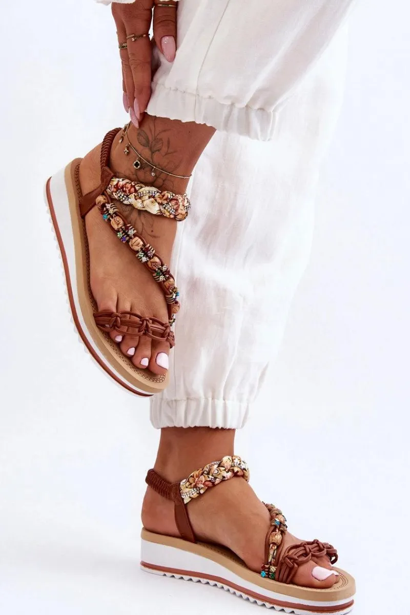 Sandały Na Koturnie>Boto Wygodne Damskie Sandały Na Koturnie Brązowe Jodie