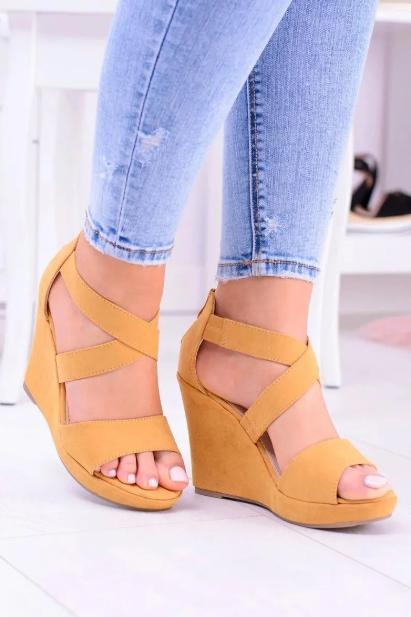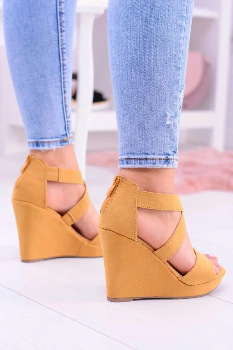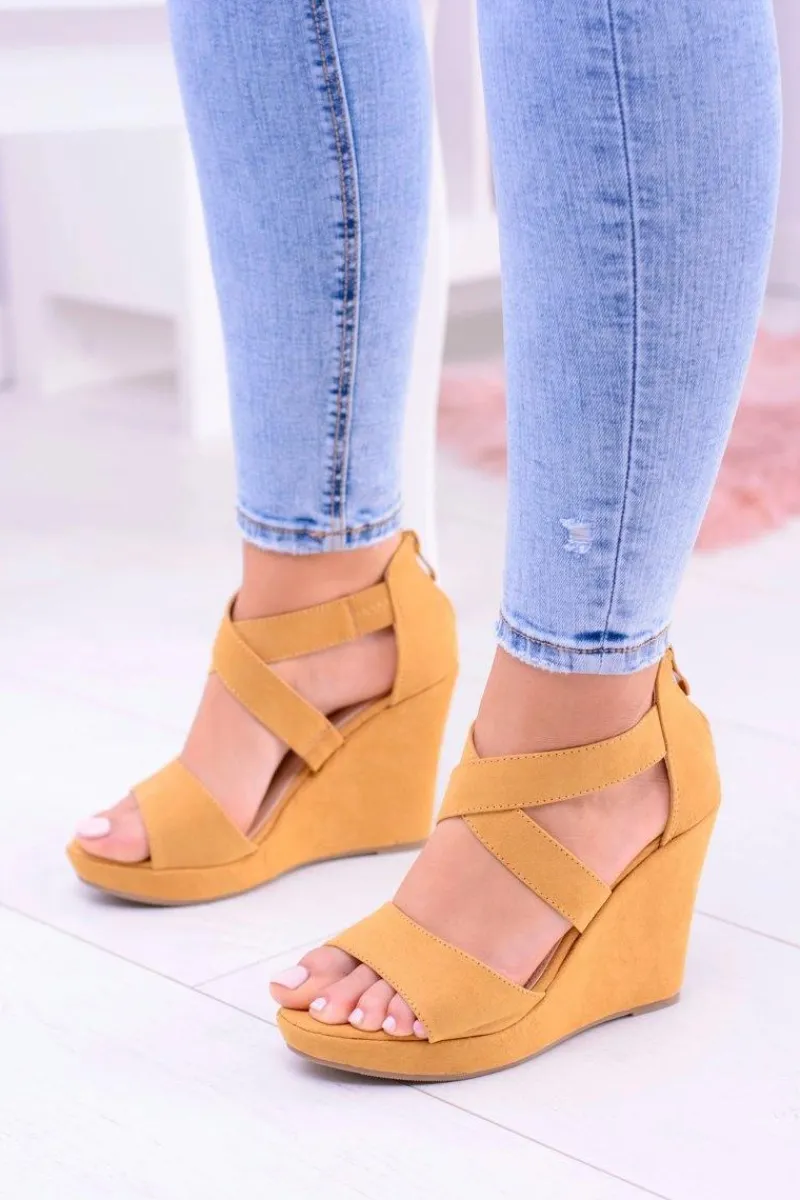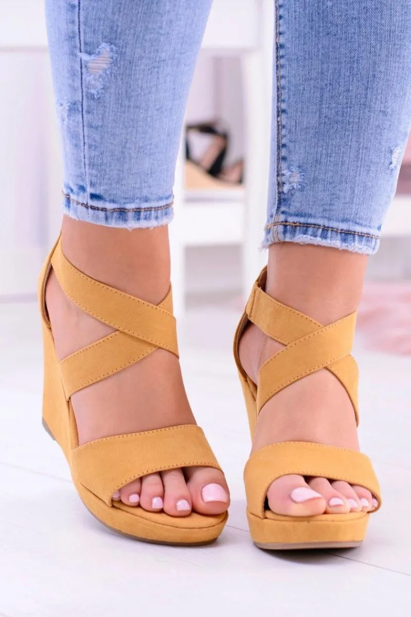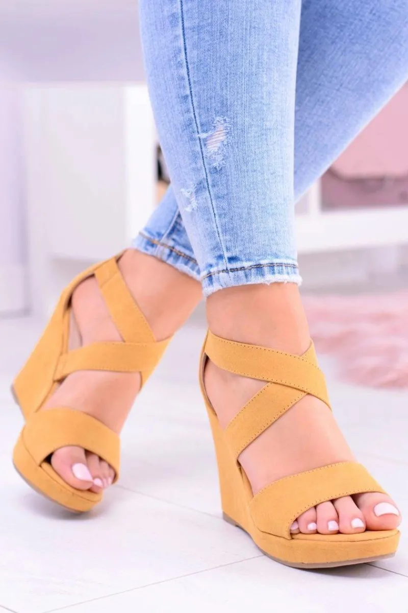 Sandały Na Koturnie>Boto Wygodne Damskie Żółte Sandały Koturny Mirabet