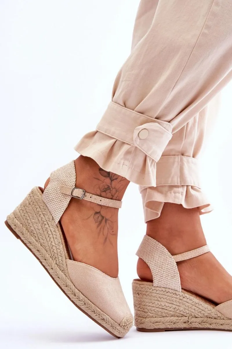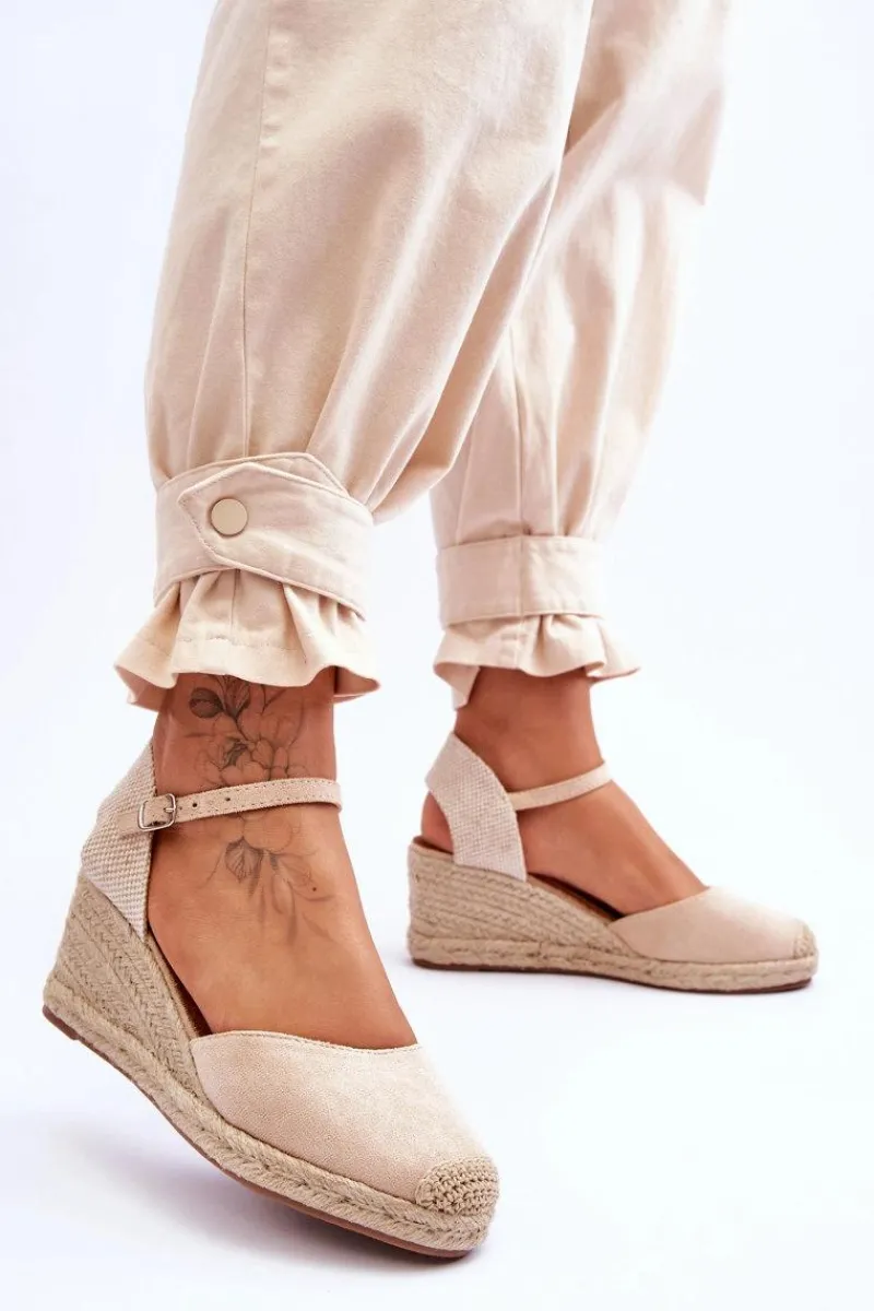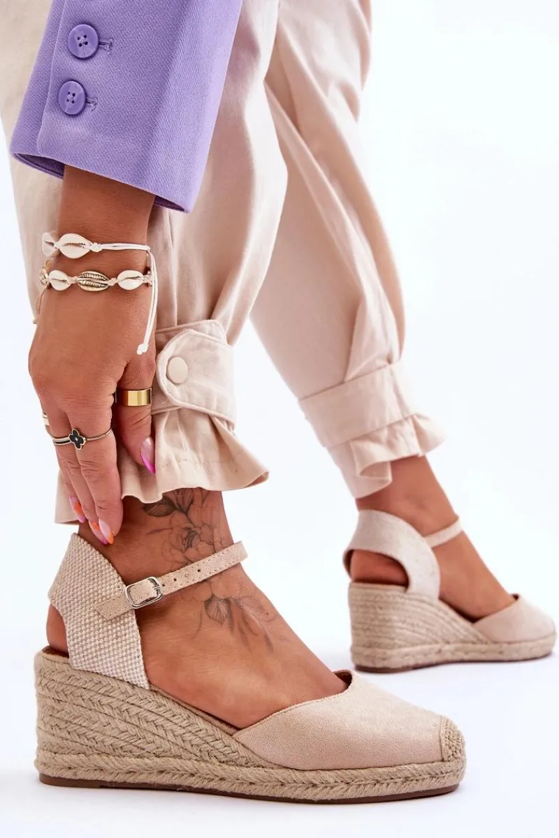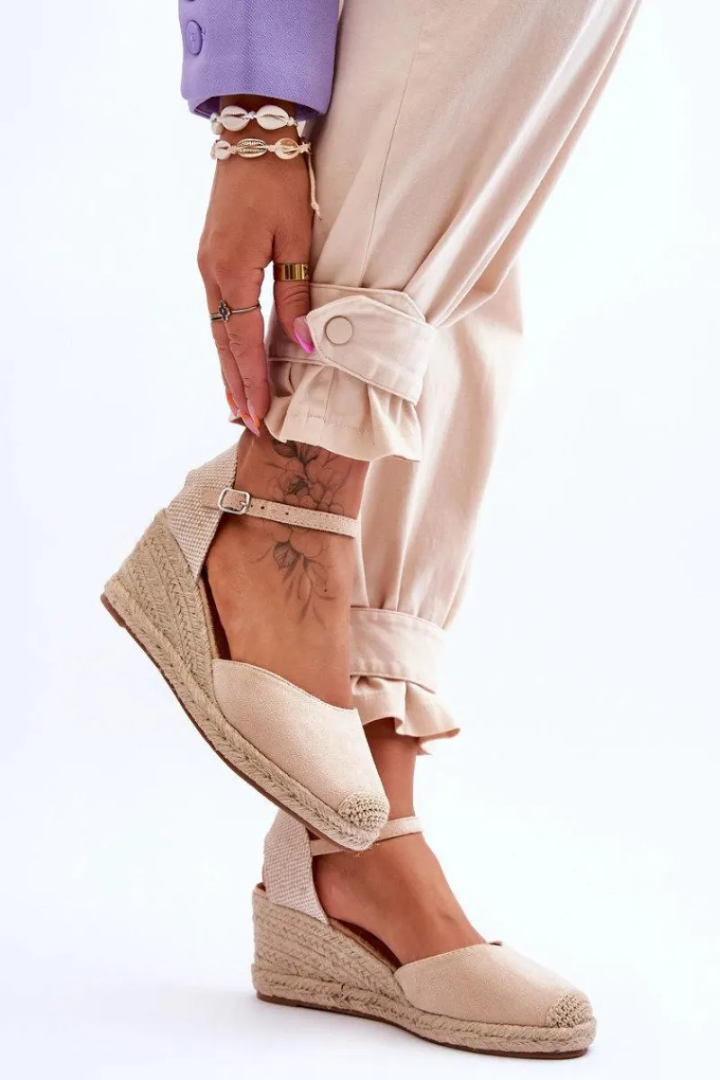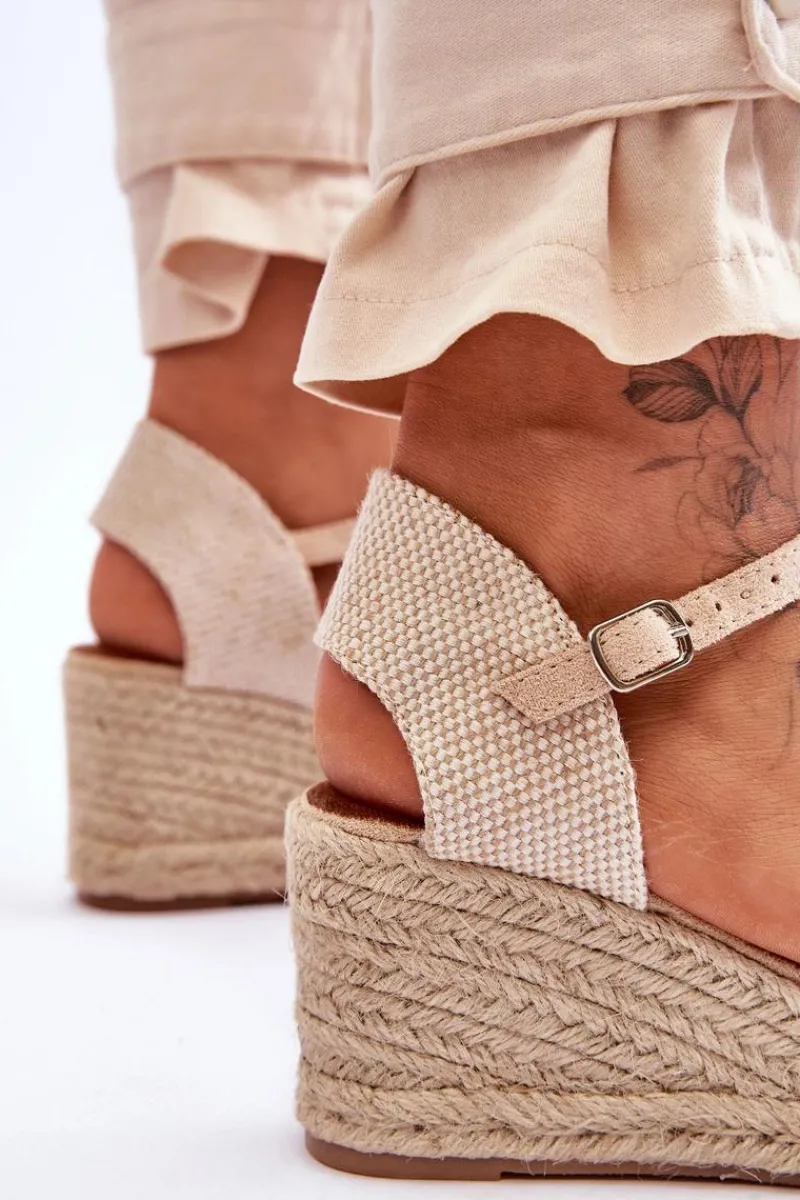 Sandały Na Koturnie>Boto Zamszowe Sandałki Espadryle Na Koturnie Beżowe Cammer
