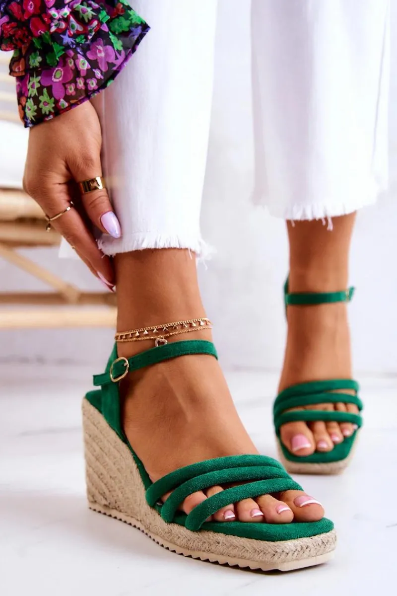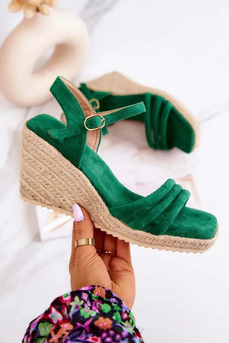 Sandały Na Koturnie>Boto Zamszowe Sandałki Na Koturnie Zielone Louisiana