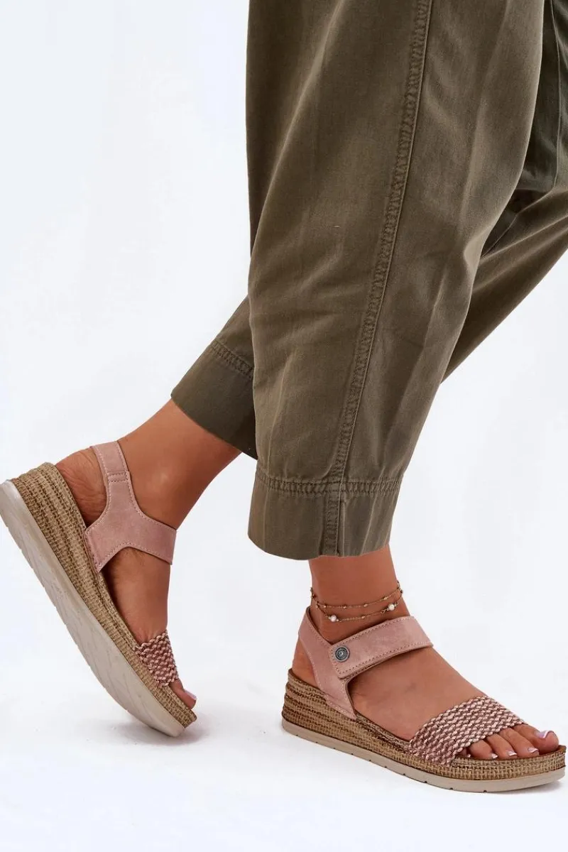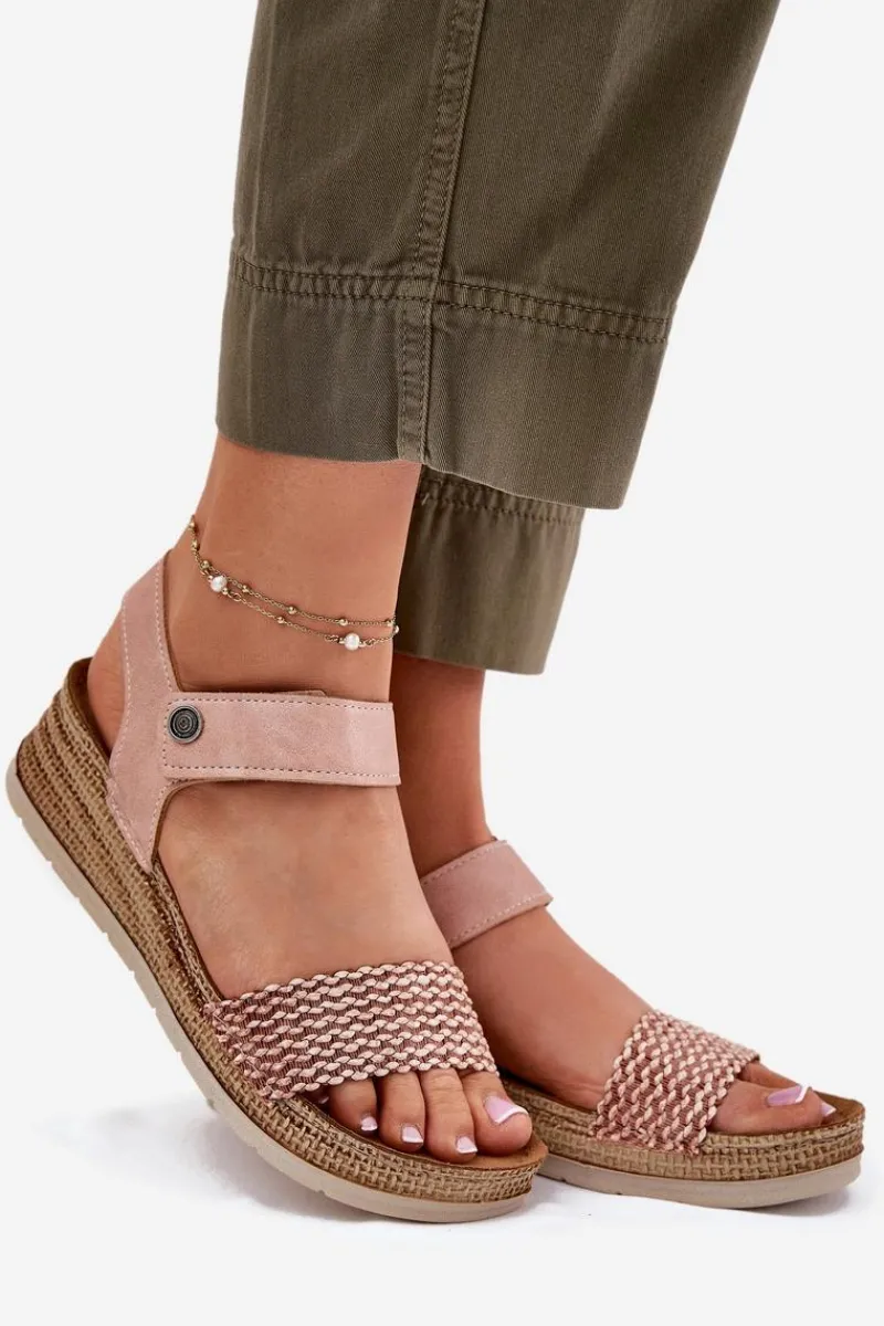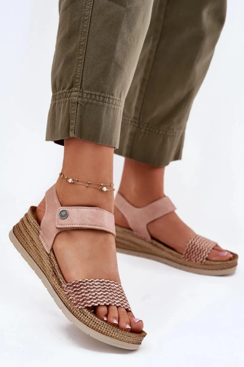 Sandały damskie od marki INBLU. Osadzone na delikatnym koturnie. Zapinane na rzep, co zapewnia doskonałe dopasowanie do stopy. Wkładka wewnętrzna „COMFORT ANATOMICO” profilowana, dostosowana do kształtu anatomicznego stopy, wykonana z naturalnej skóry. Spód dwuwarstwowy wykonany z lekkiego i elastycznego tworzywa – poliuretanu – zapewnia sprężystość i bardzo dobre przenoszenie obciążeń na podłoże. Przy wyborze rozmiaru prosimy kierować się tabelą rozmiarów.