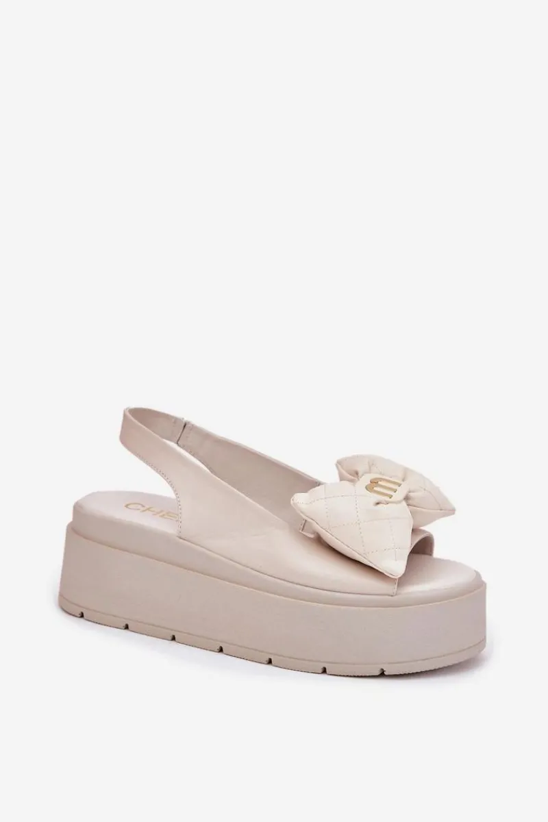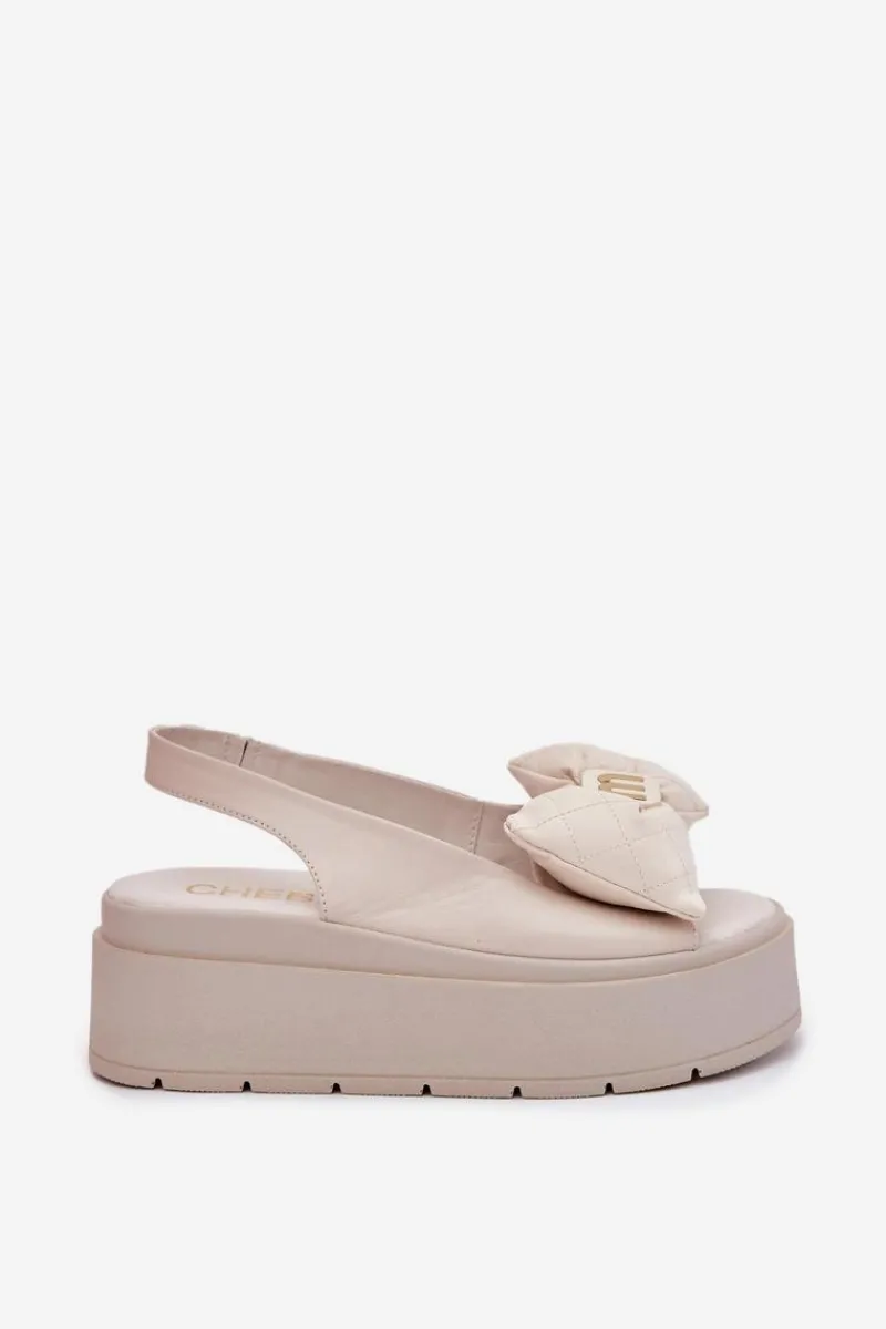 Skórzane sandały damskie od marki Chebello, osadzone na masywnej platformie, to elegancka i stylowa propozycja na ciepłe dni. Z przodu ozdobna kokardka, która dodaje im subtelnej elegancji i kobiecego uroku. Masywna platforma zapewnia komfort przez cały dzień, sprawiając, że sandały te są idealnym wyborem na codzienne wyjścia i specjalne okazje. łączą modny wygląd z funkcjonalnością. Przy wyborze rozmiaru prosimy kierować się tabelą rozmiarów.