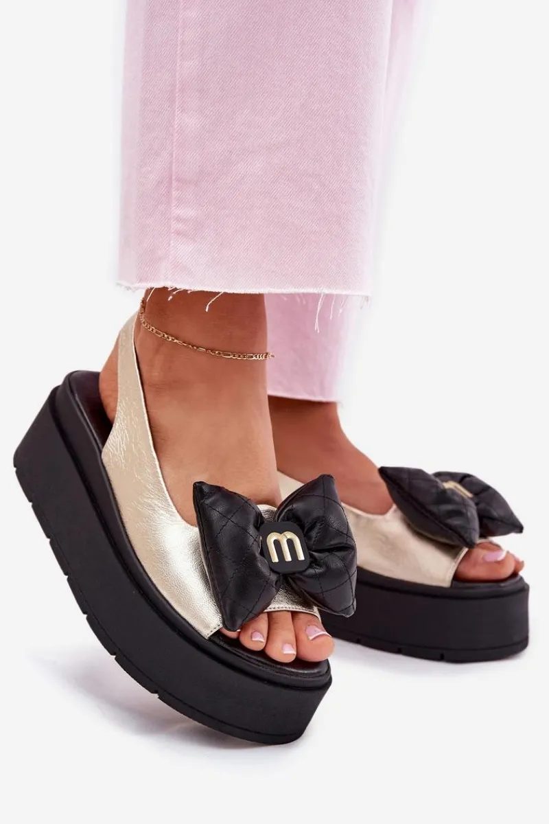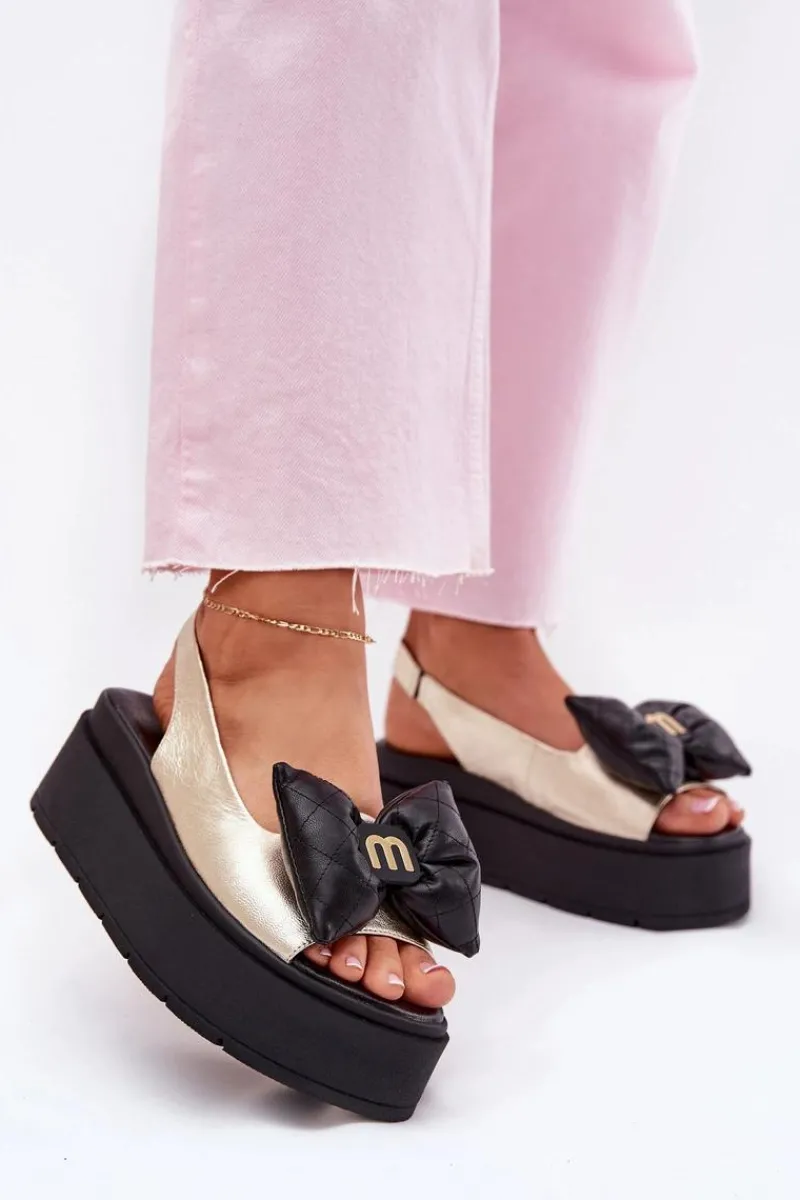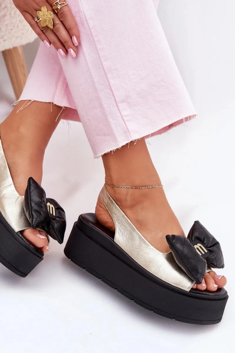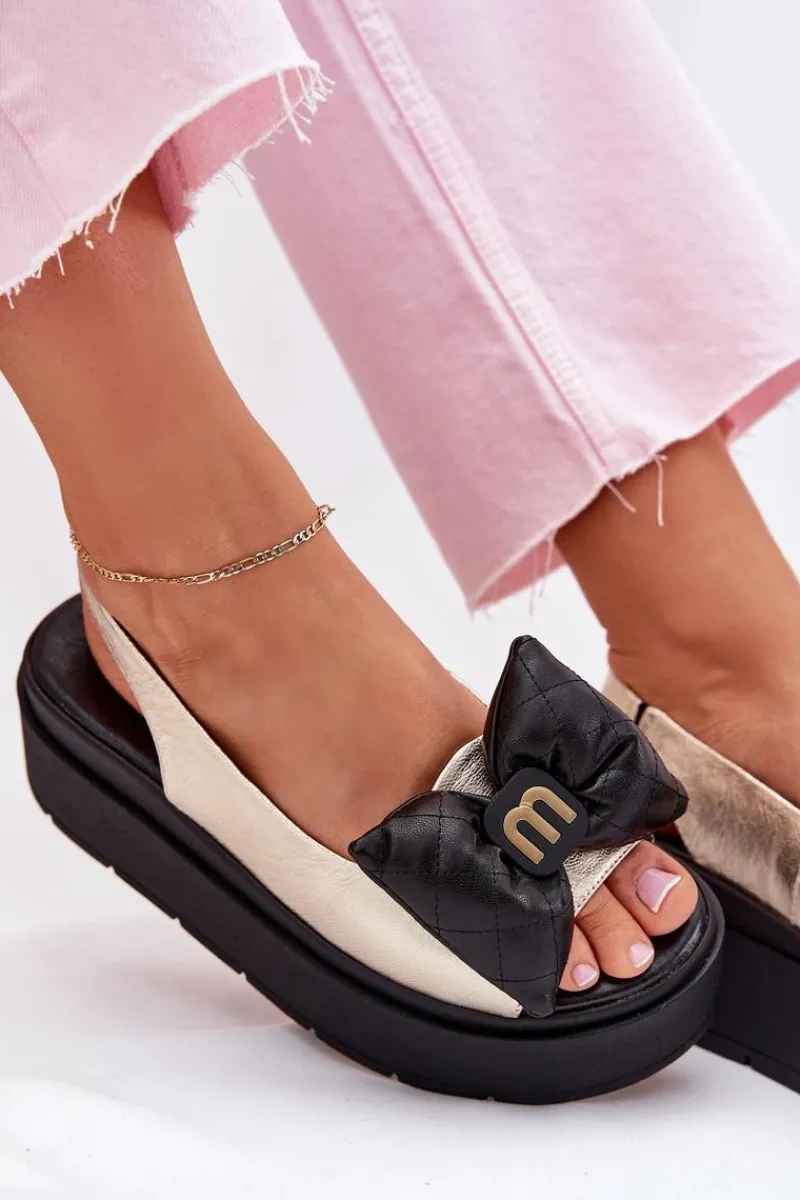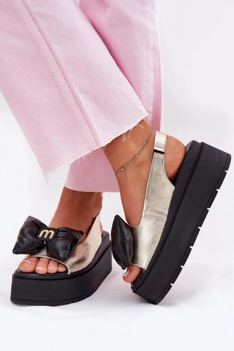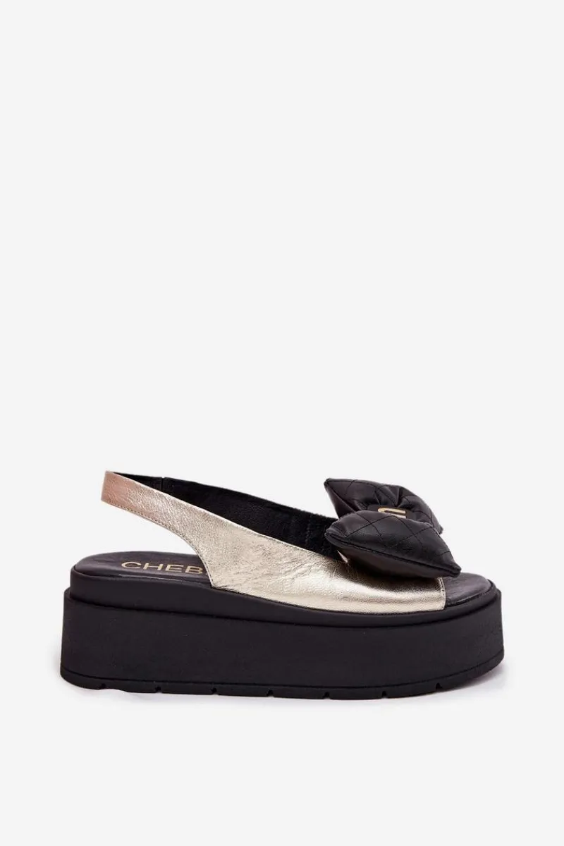 Skórzane sandały damskie od marki Chebello, osadzone na masywnej platformie, to elegancka i stylowa propozycja na ciepłe dni. Z przodu ozdobna kokardka, która dodaje im subtelnej elegancji i kobiecego uroku. Masywna platforma zapewnia komfort przez cały dzień, sprawiając, że sandały te są idealnym wyborem na codzienne wyjścia i specjalne okazje. łączą modny wygląd z funkcjonalnością. Przy wyborze rozmiaru prosimy kierować się tabelą rozmiarów.