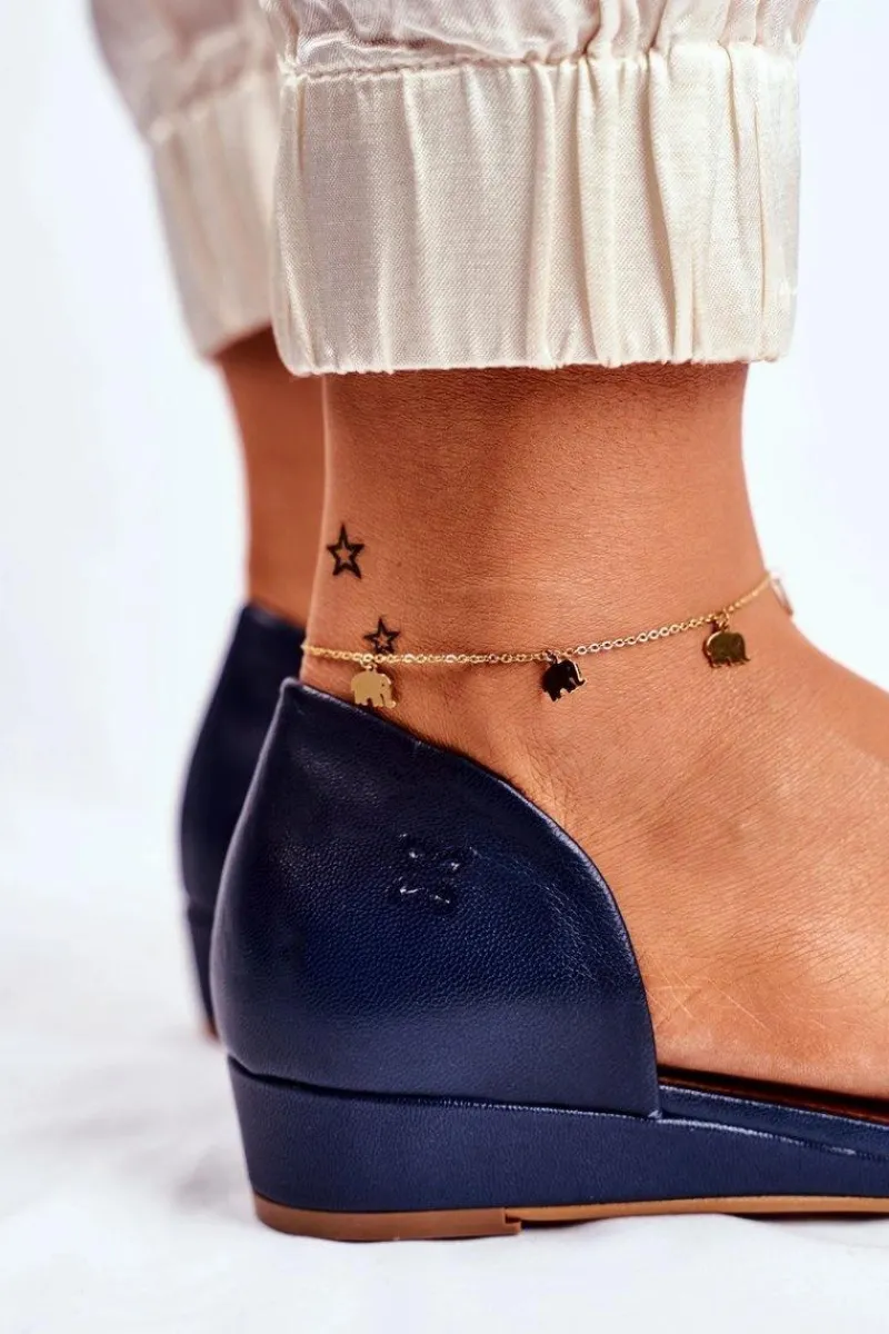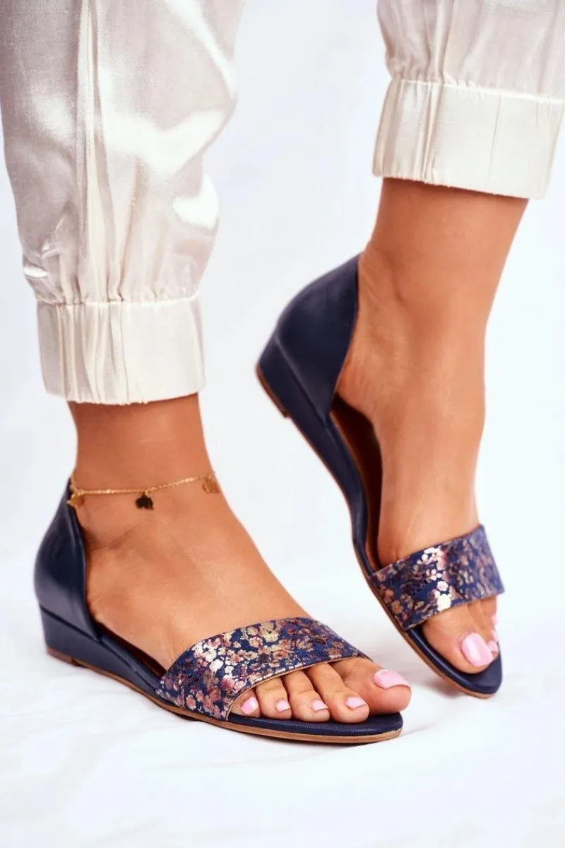Sandały Na Koturnie|Sandały Płaskie>Maciejka Skórzane Sandały 1971-50 Granatowe