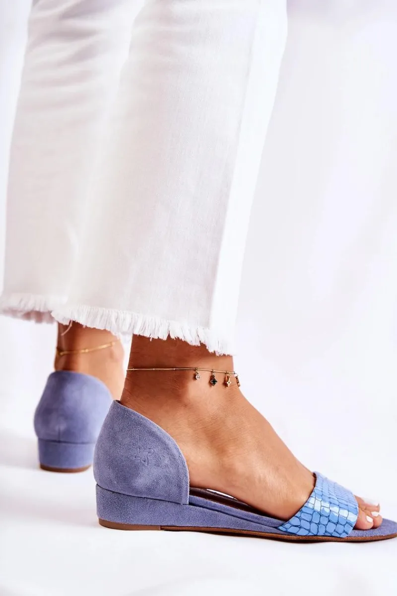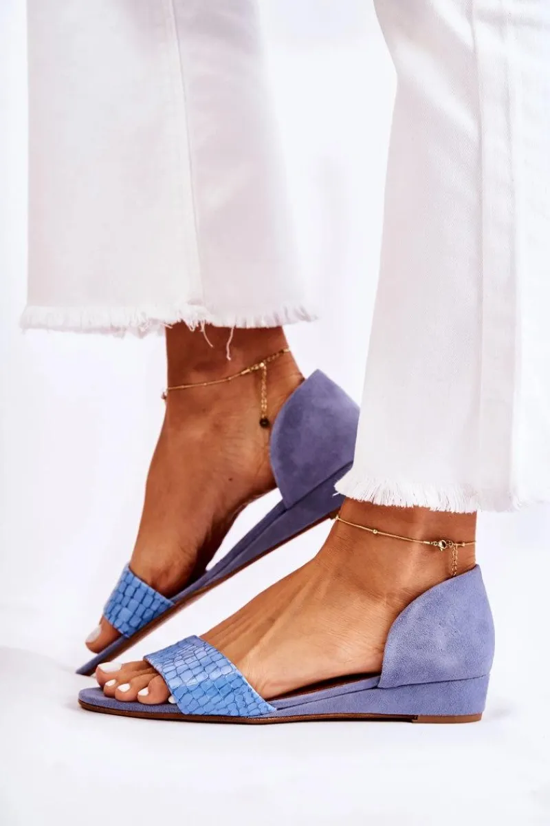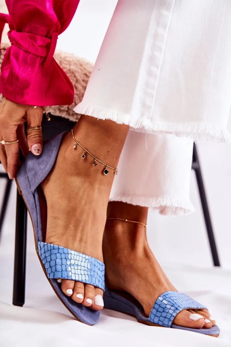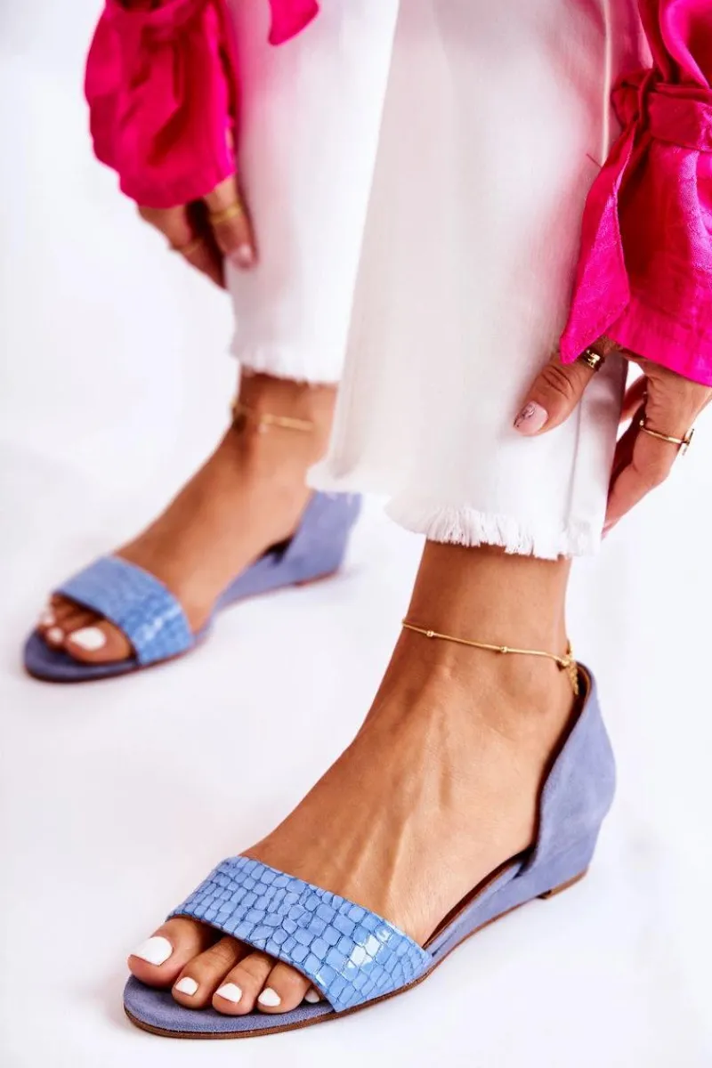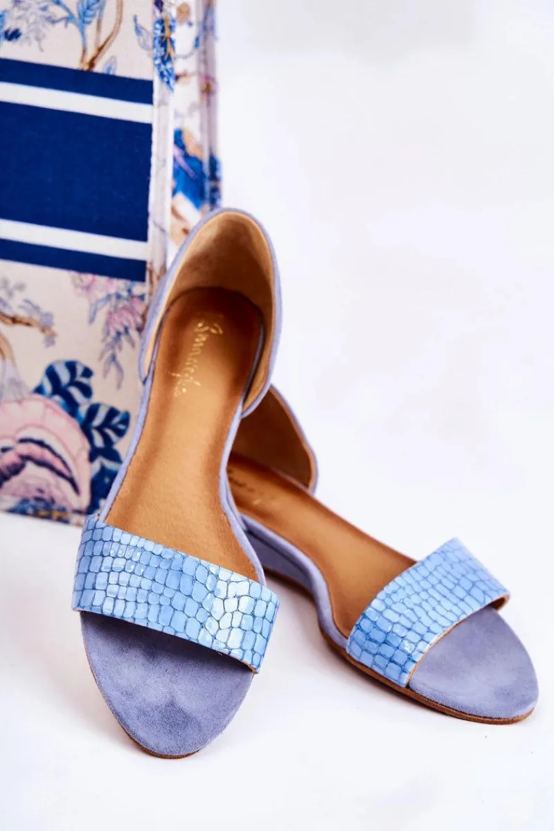 Sandały Na Koturnie|Sandały Płaskie>Maciejka Skórzane Sandały 1971-61 Niebieskie