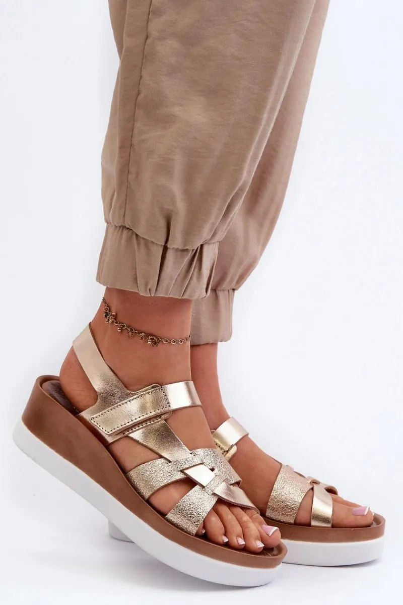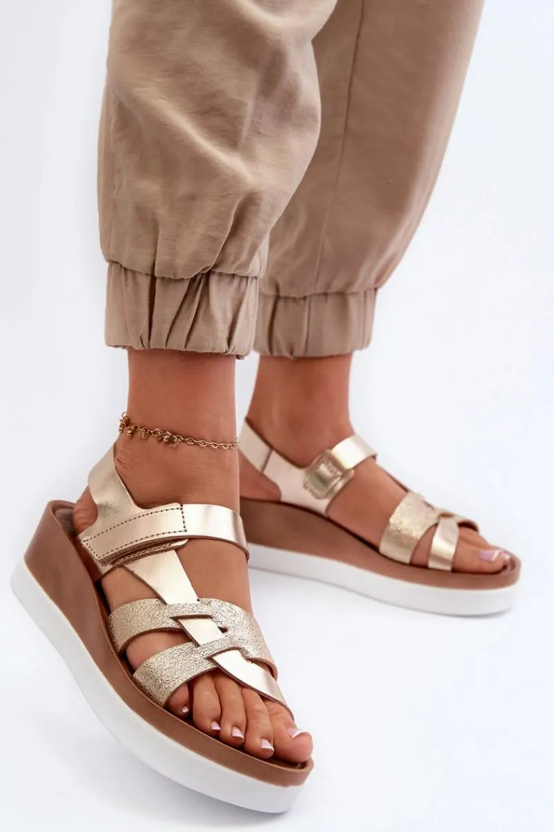 Niezwykle wygodne sandały damskie zostały wykonane z naturalnej skóry. Zapinane na rzep. Osadzone na platformie oraz lekkim koturnie. Miękka, skórzana wkładka zapewni komfort podczas noszenia w upalne dni. Fason ten z pewnością przypadnie Ci do gustu! Przy wyborze rozmiaru prosimy kierować się tabelą rozmiarów.