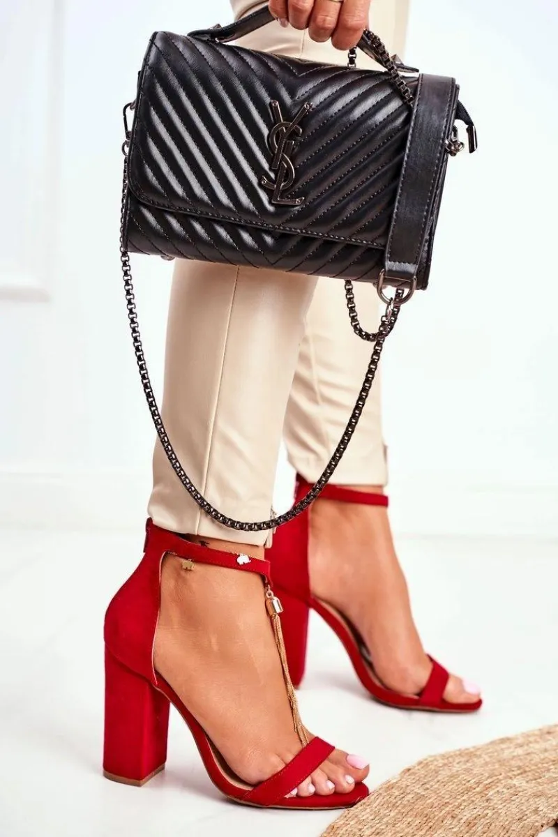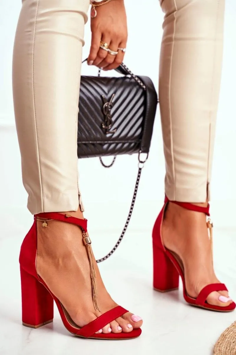 Sandały Na Obcasie>Boto Czerwone Zamszowe Sandałki na Słupku z Frędzlem Annick