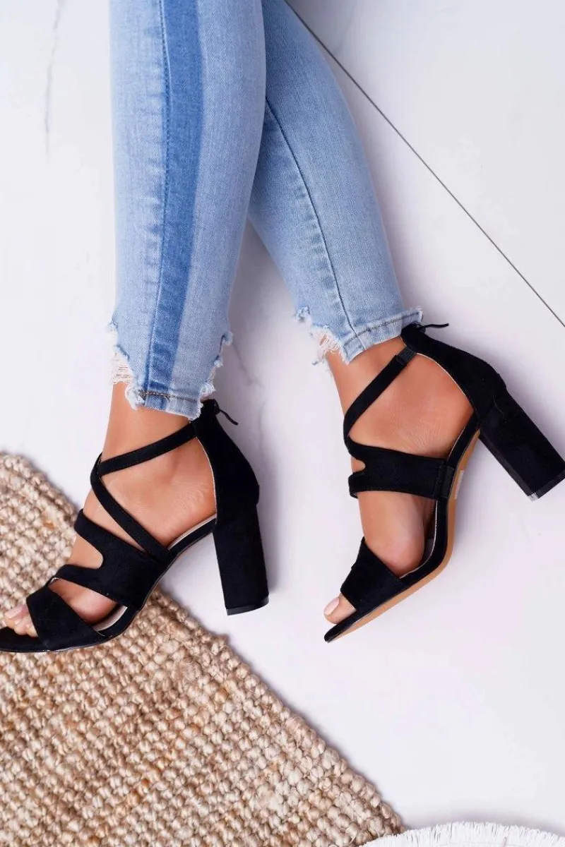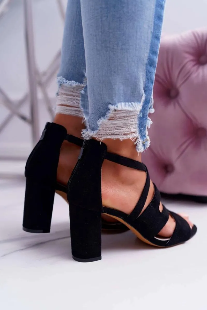 Sandały Na Obcasie>Boto Damskie Sandały Na Słupku Zamszowe Czarne Lemilia