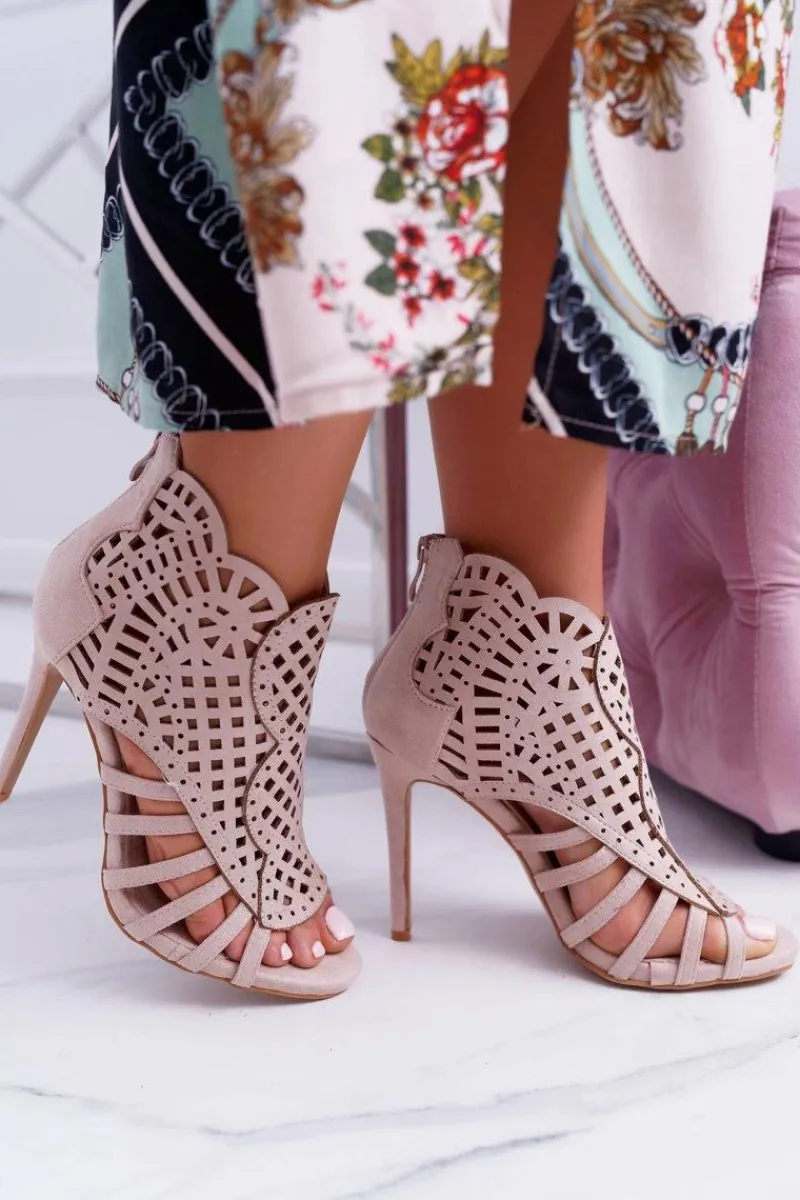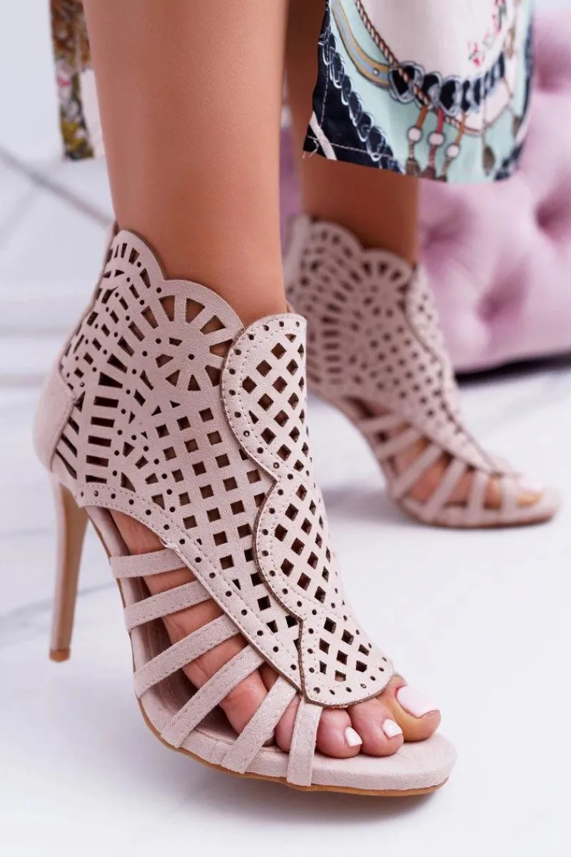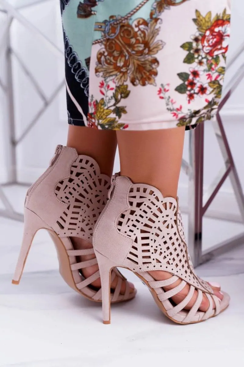 Sandały Na Obcasie>Boto Damskie Zamszowe Beżowe Sandały na Szpilce Viviane