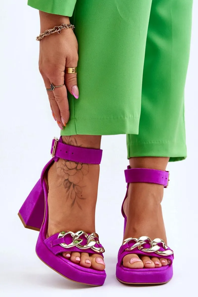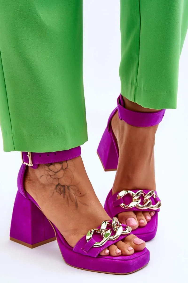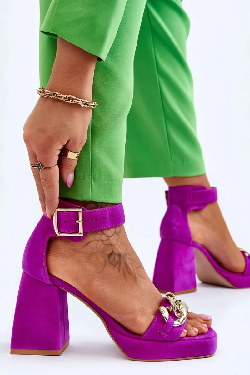 Sandały Na Obcasie>Boto Damskie Zamszowe Sandały Na Masywnym Obcasie Lewski Shoes 3207 Fuksja Różowy
