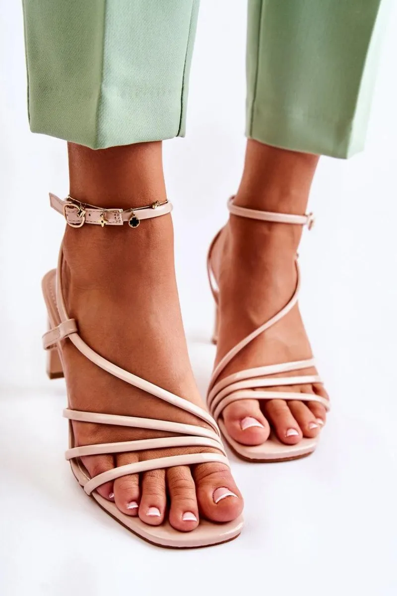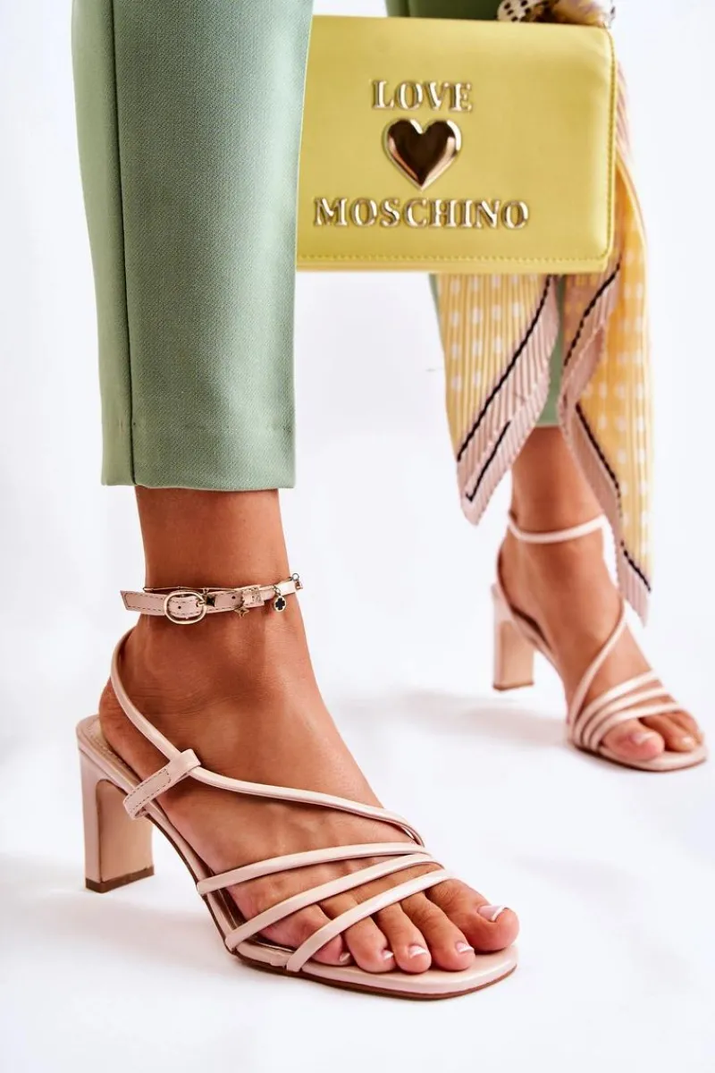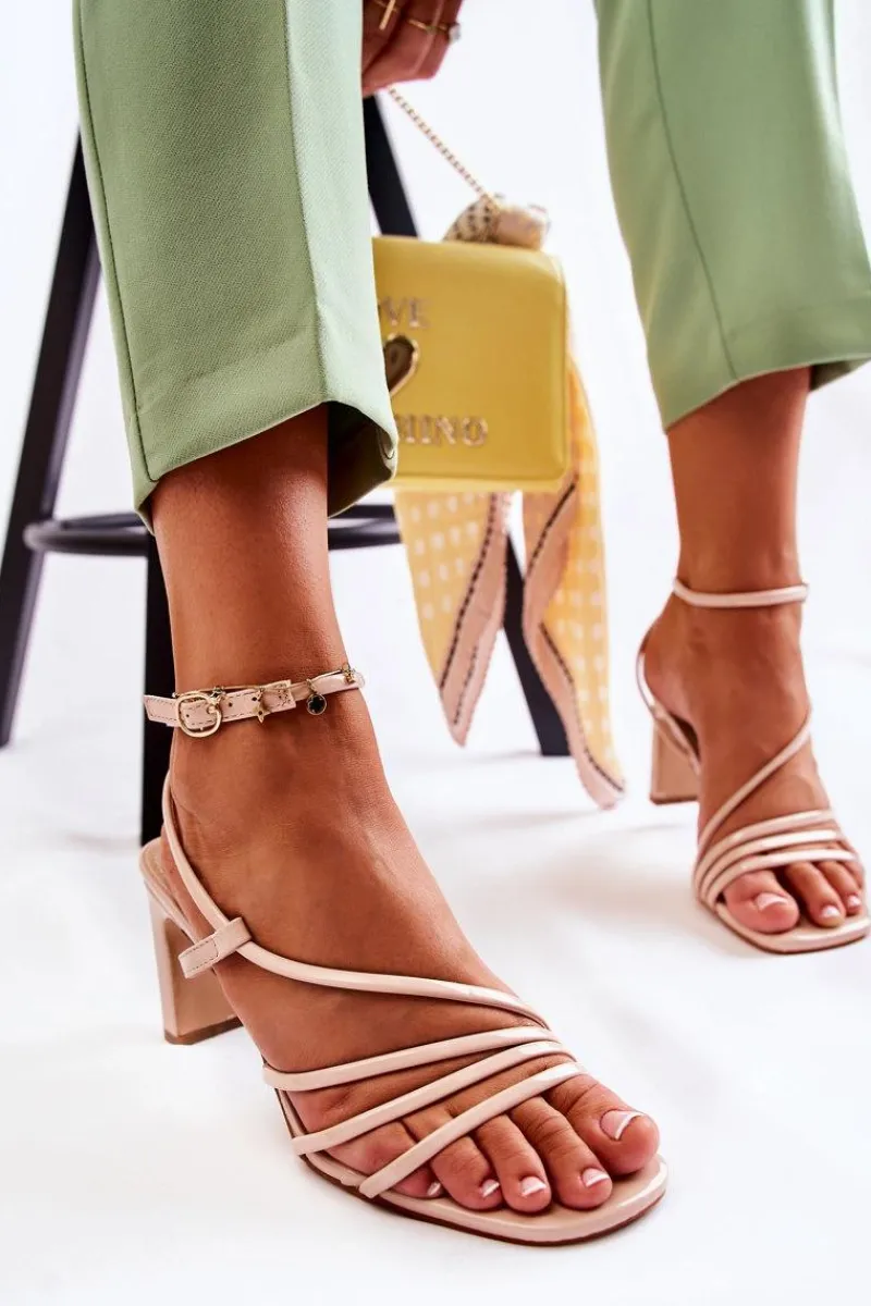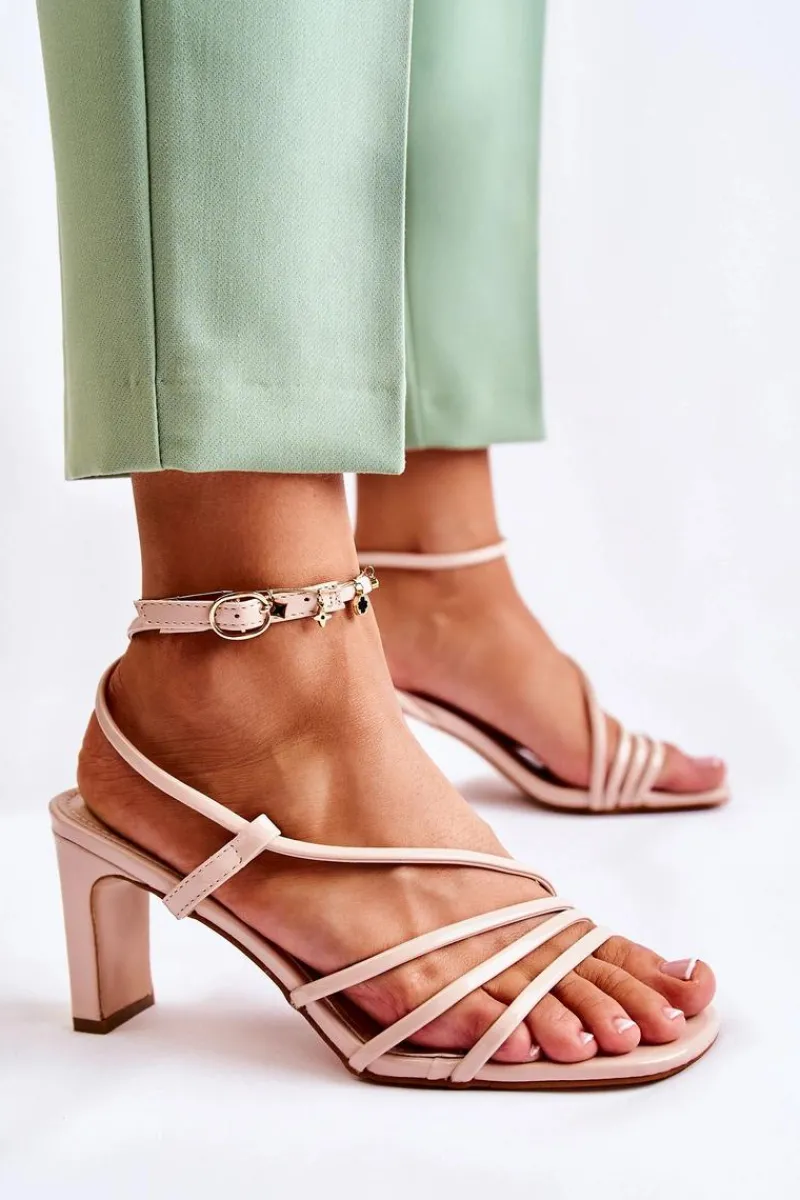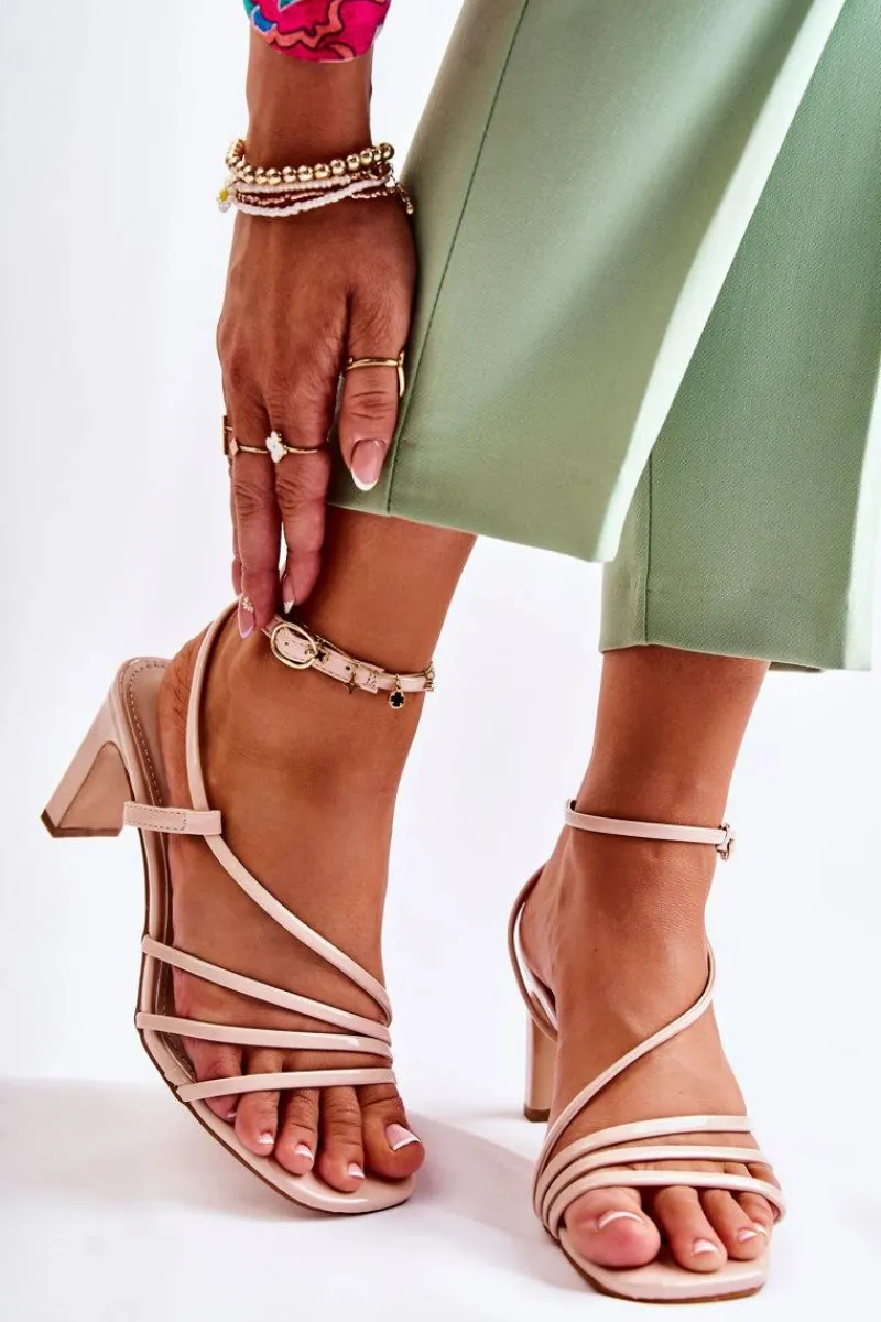 Sandały damskie zostały wykonane z eko skóry. Posiadają cienkie paseczki, dzięki którym są niezwykle przewiewne. Idealne buty na różnego rodzaju uroczystości w upalne dni! Osadzone na słupku. Model z odkrytym, kwadratowym noskiem. Buty zapinane na sprzączkę z regulowanym paskiem. Koniecznie sprawdź pozostałe modele sandałek na obcasie! Przy wyborze rozmiaru prosimy sugerować się tabelą rozmiarów.