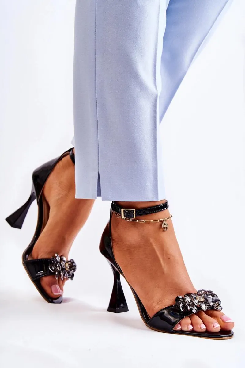 Wygodne sandały to marzenie każdej kobiety! Elegancki model został wykonany z naturalnej skóry. Modny obcas zwężany ku górze. Miękka, skórzana wkładka to gwarancja komfortu przez cały dzień. Sandałki są zapinane wokół kostki na regulowany pasek ze sprzączką. Posiadają usztywniany zapiętek. Pasek z przodu posiada ozdobne kryształki z jedną cyrkonią. Buty świetne na wiele okazji! Koniecznie powinnaś mieć ten model w swojej szafie! Przy wyborze rozmiaru prosimy kierować tabelą rozmiarów.