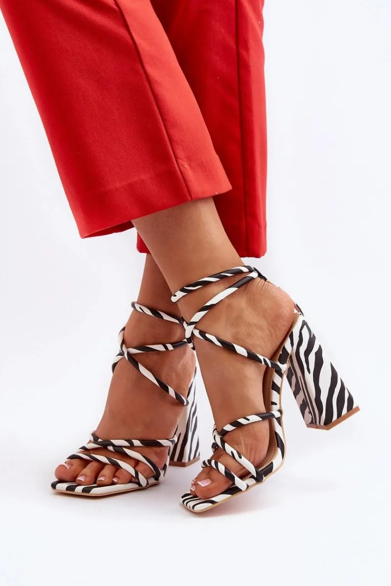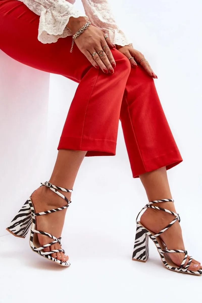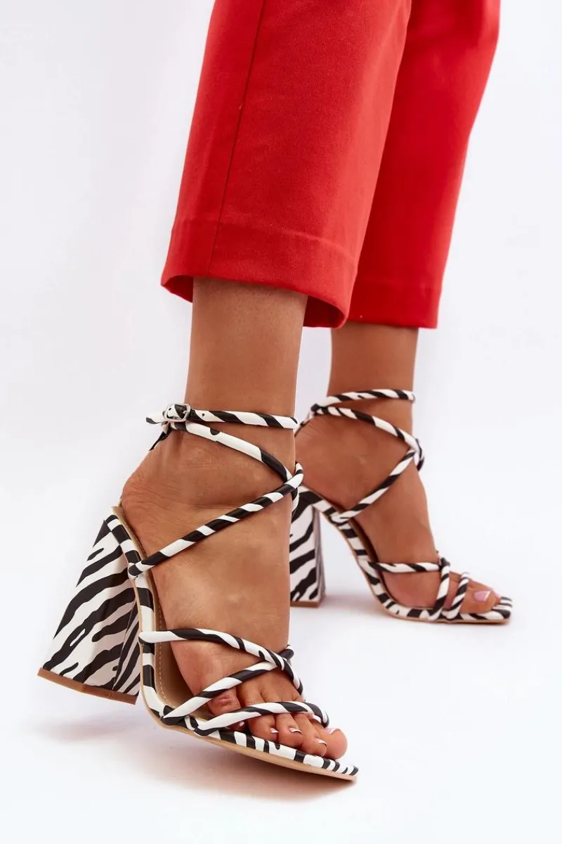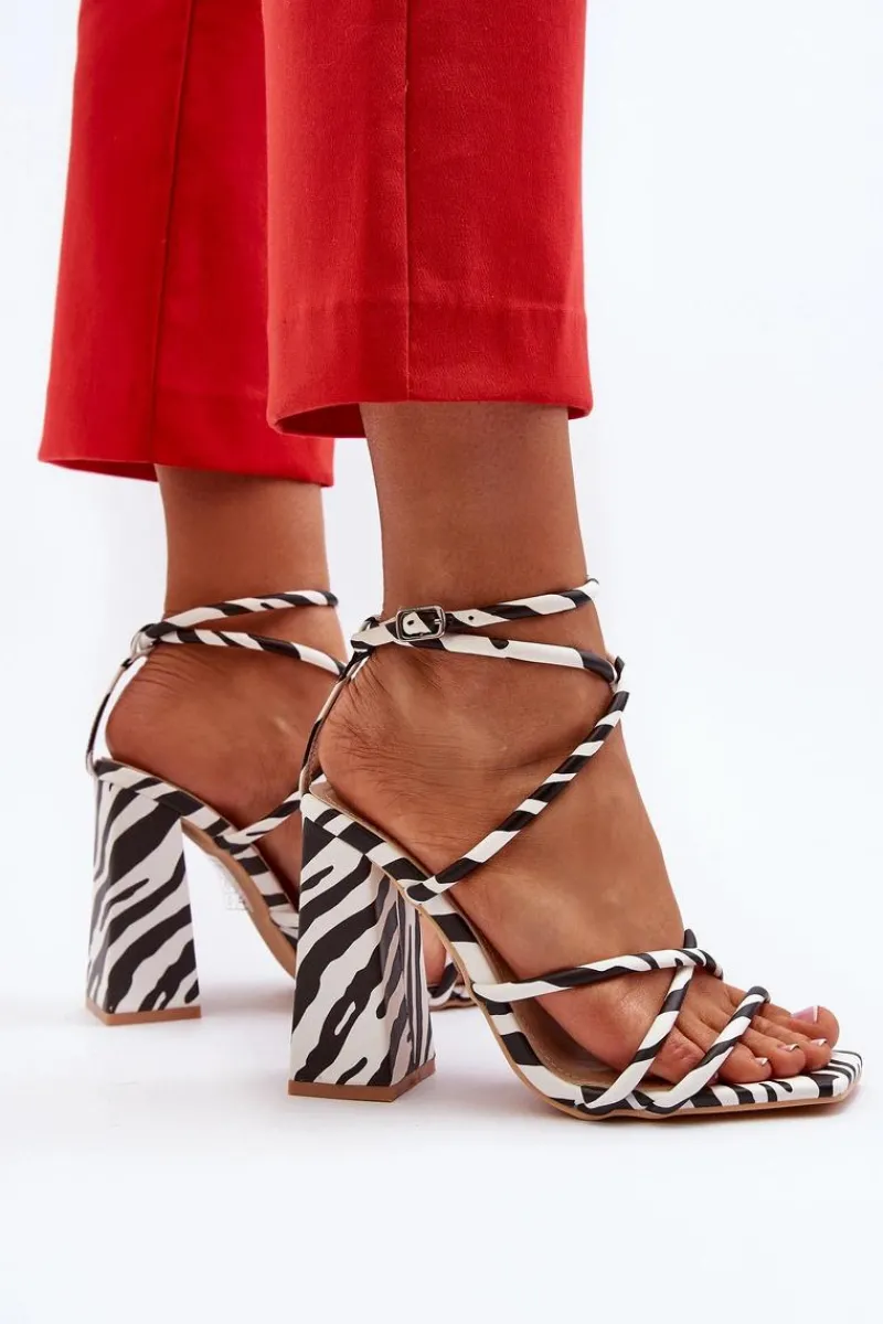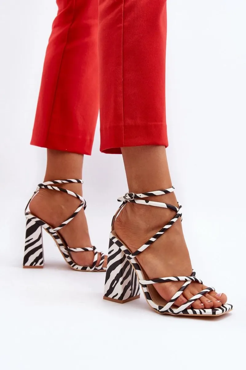 Cudowne sandałki damskie zostały wykonane z eko skóry. Ten ciekawy fason pięknie prezentuje się na nodze. Miękka wkładka z eko skóry zapewni komfort przez dłuższy czas. Obcas w postaci słupka szerszego u dołu. Sandałki posiadają regulowany pasek zapinany na sprzączkę. Idealne na imprezę, uroczystość rodzinną czy randkę! Koniecznie powinnaś je mieć! Przy wyborze rozmiaru prosimy sugerować się tabelą rozmiarów.