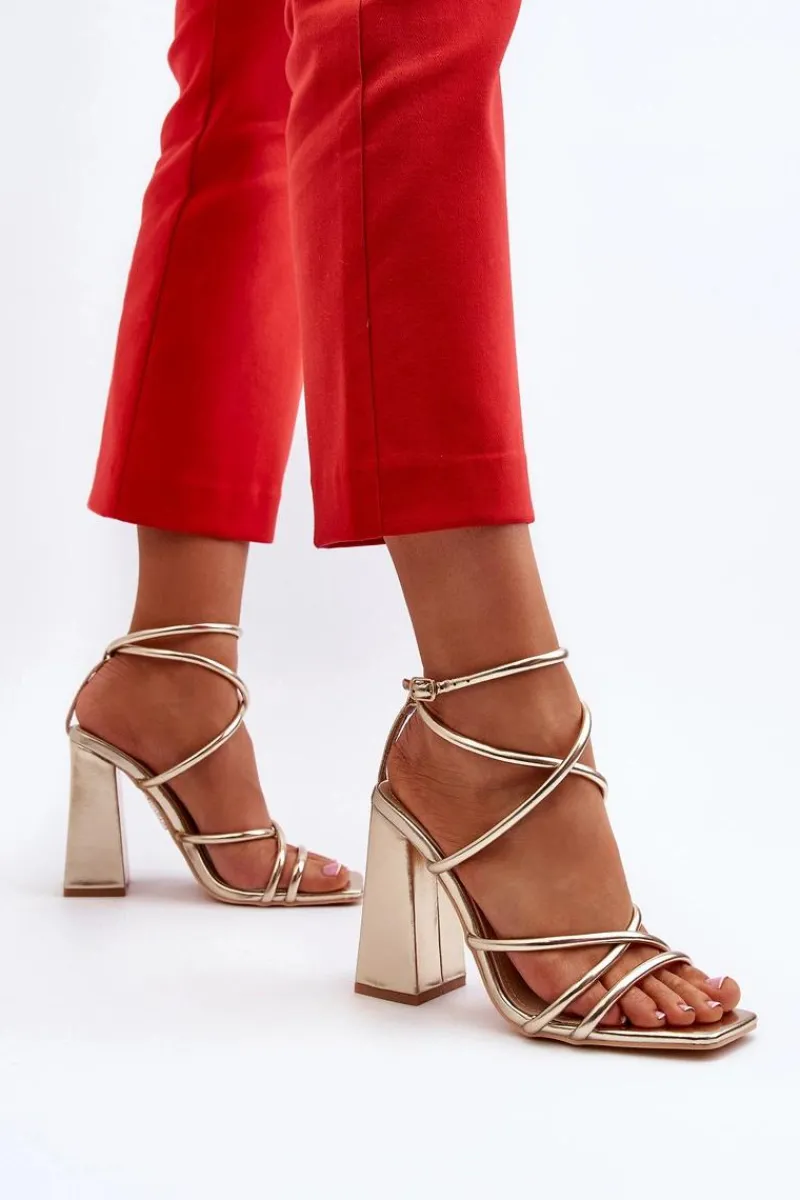 Cudowne sandałki damskie zostały wykonane z eko skóry. Ten ciekawy fason pięknie prezentuje się na nodze. Miękka wkładka z eko skóry zapewni komfort przez dłuższy czas. Obcas w postaci słupka szerszego u dołu. Sandałki posiadają regulowany pasek zapinany na sprzączkę. Idealne na imprezę, uroczystość rodzinną czy randkę! Koniecznie powinnaś je mieć! Przy wyborze rozmiaru prosimy sugerować się tabelą rozmiarów.