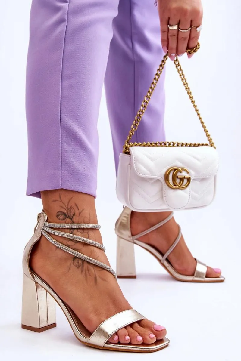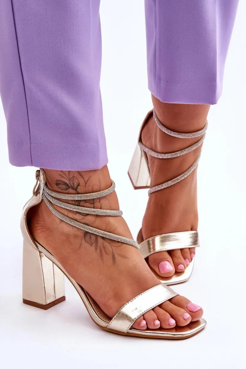 Cudne sandały na obcasie w postaci słupka zostały wykonane z eko skóry. Sandałki posiadają na wysokości kostki paseczki z dżetami imitującymi cyrkonie. Nosek odkryty, kwadratowy. Wkładka z eko skóry zapewni komfort podczas użytkowania. Model ten jest zapinany na suwak z tyłu cholewki. Sandałki z pewnością wykorzystasz do wielu stylizacji! Przy wyborze rozmiaru prosimy sugerować się tabelą rozmiarów.
