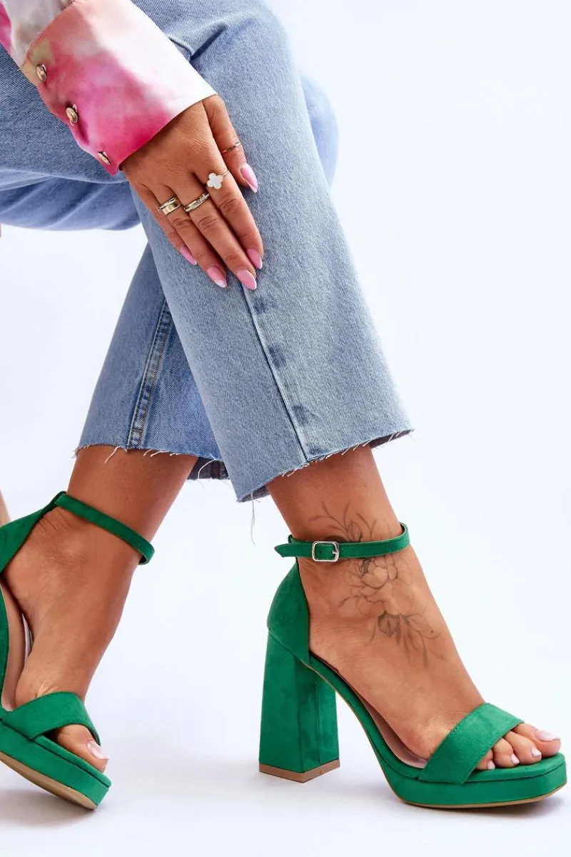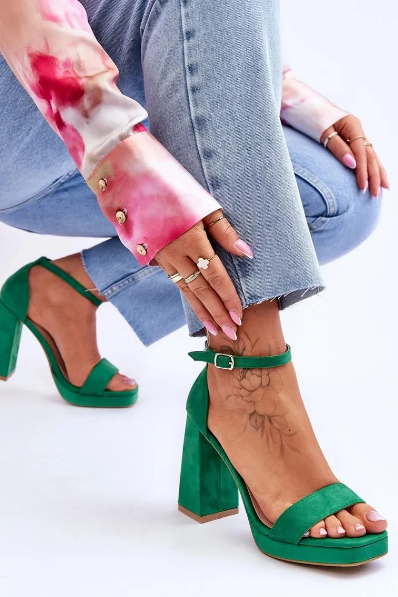Rewelacyjne sandałki na masywnym, kwadratowym obcasie i platformie powinny być Twoje! Na przodzie posiadają paseczek, a z tyłu usztywniany zapiętek. Model ten został wykonany z miłego w dotyku eko zamszu. Sandałki posiadają klasyczne zapinanie na regulowany pasek ze sprzączką. Koniecznie sprawdź także pozostałe kolory sandałek! Przy wyborze rozmiaru prosimy kierować tabelą rozmiarów.