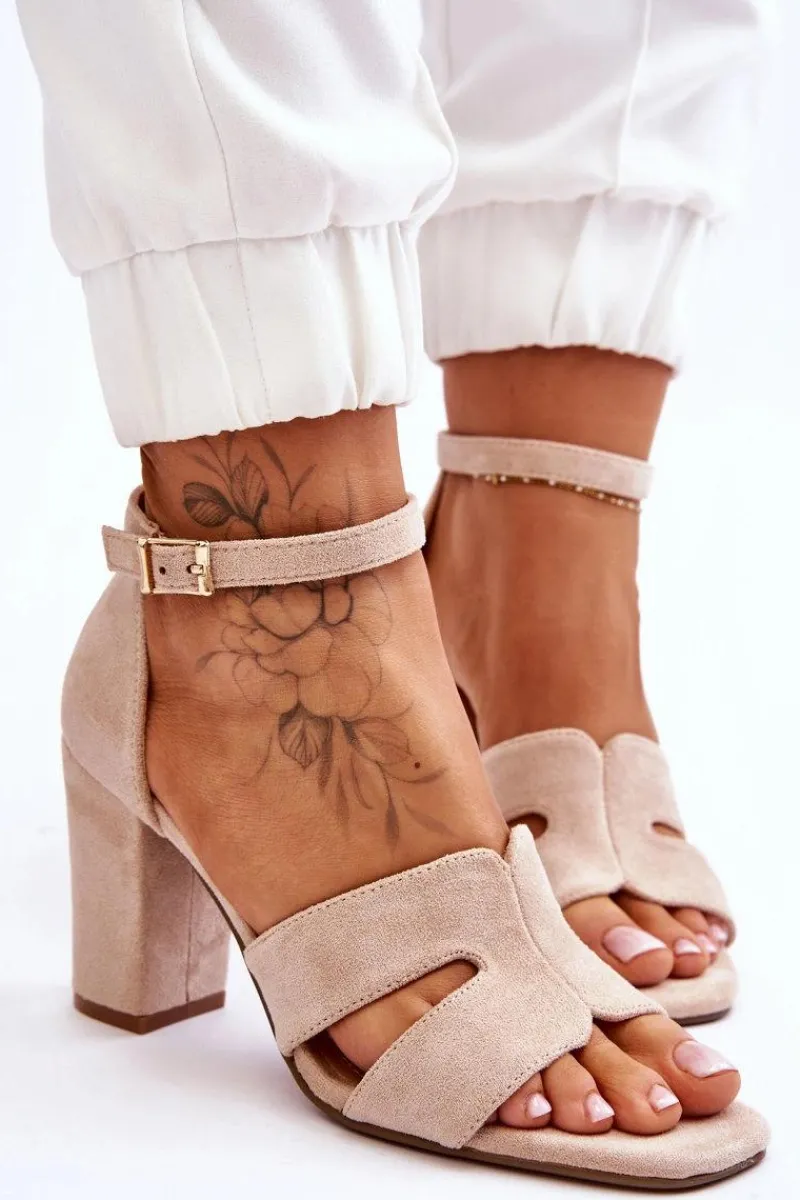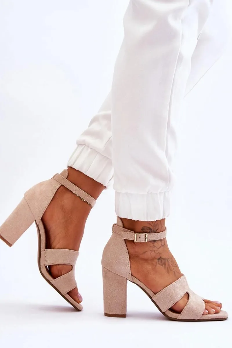 Sandały na obcasie posiadają wkładkę wykonaną z naturalnej skóry, która zapewnia stopom długotrwałą wygodę. Ciesz się komfortem i swobodą podczas różnych uroczystości czy spotkań ze znajomymi. Eleganckie sandały posiadają zapięcie na sprzączkę, dzięki temu można je idealnie dopasować do tęgości stopy. Cholewka butów została wykonana z wysokiej jakości eko zamszu. Sandały z odkrytymi palcami nigdy nie wyjdą z mody, dlatego powinnaś zakupić ten model! Przy wyborze rozmiaru prosimy sugerować się tabelą rozmiarów.
