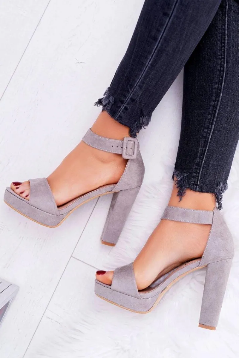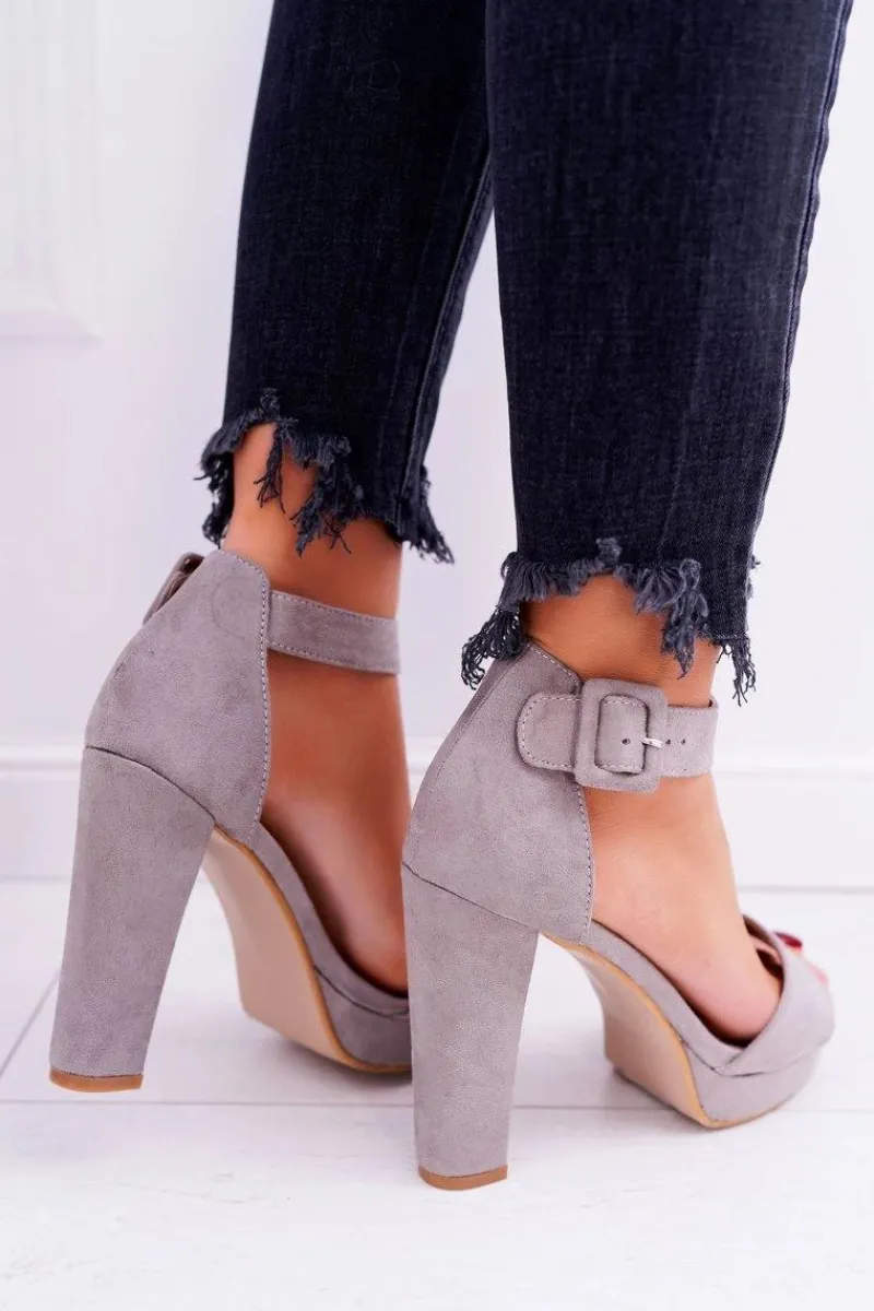 Sandały Na Obcasie>Boto Sandały Damskie Na Obcasie Słupku Zamsz Szare ShakeUp