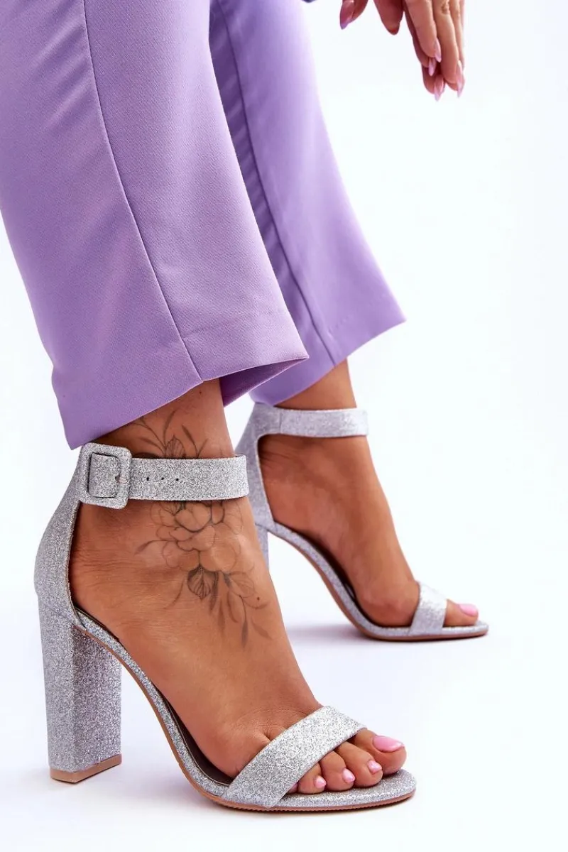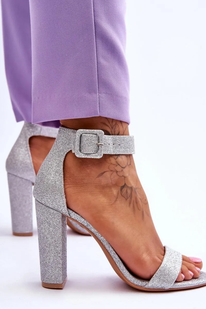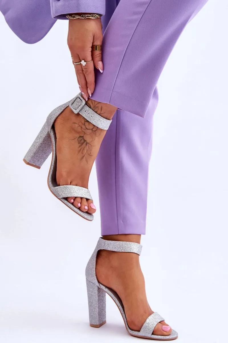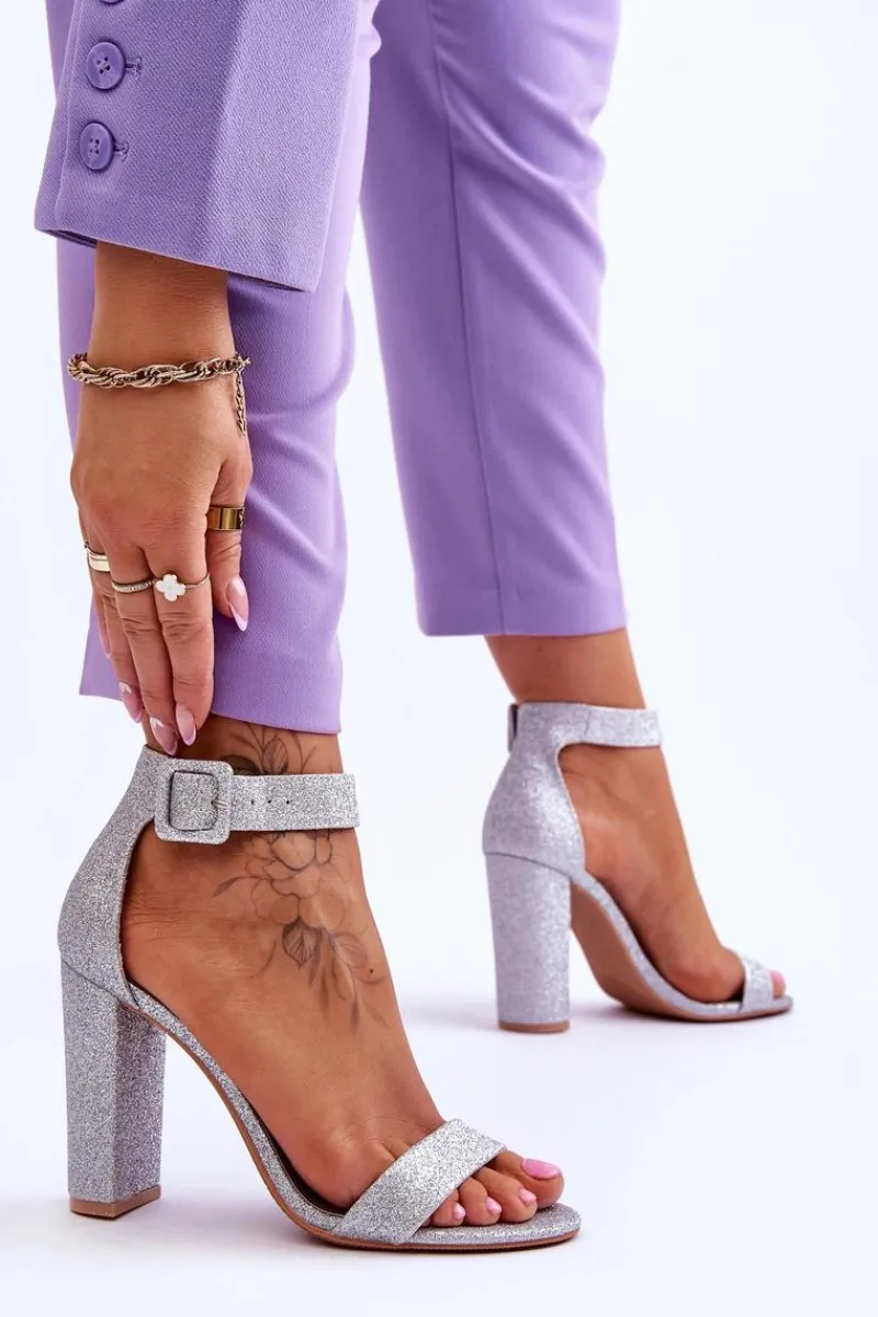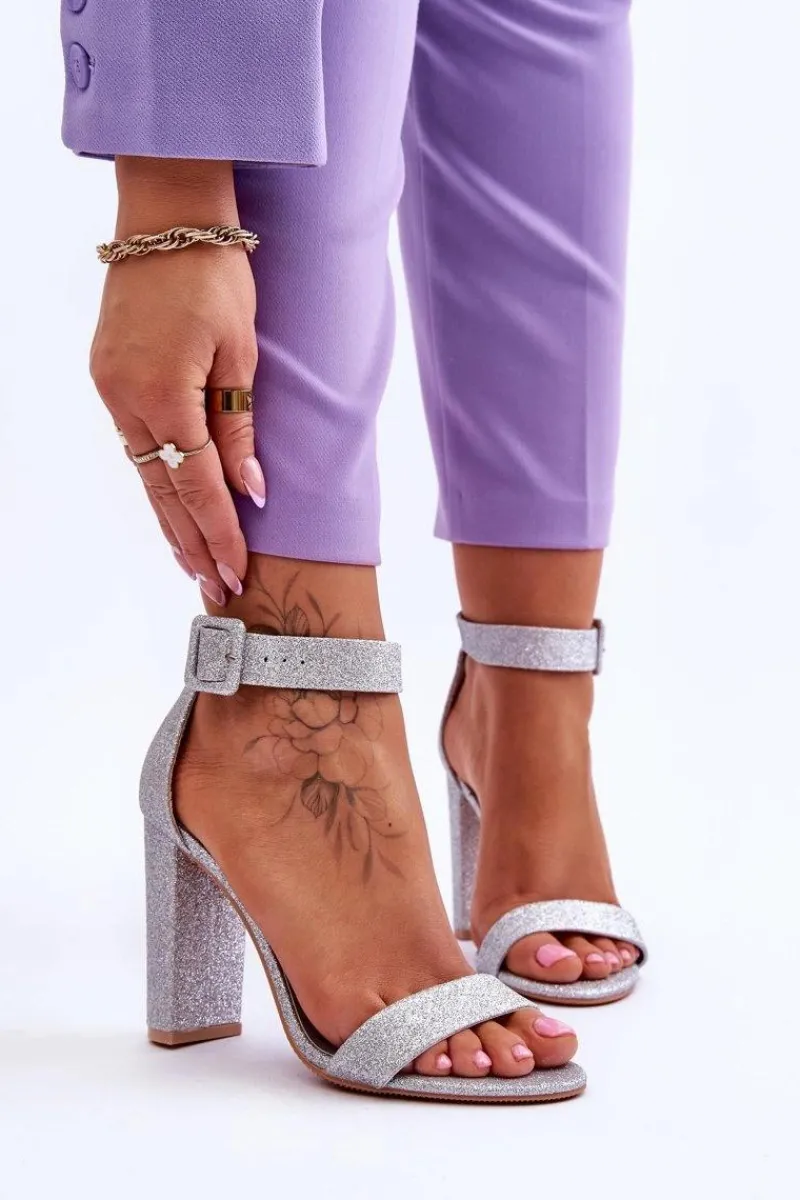 Sandały Na Obcasie>Boto Sandały Damskie Na Słupku Brokat Srebrne Joalice