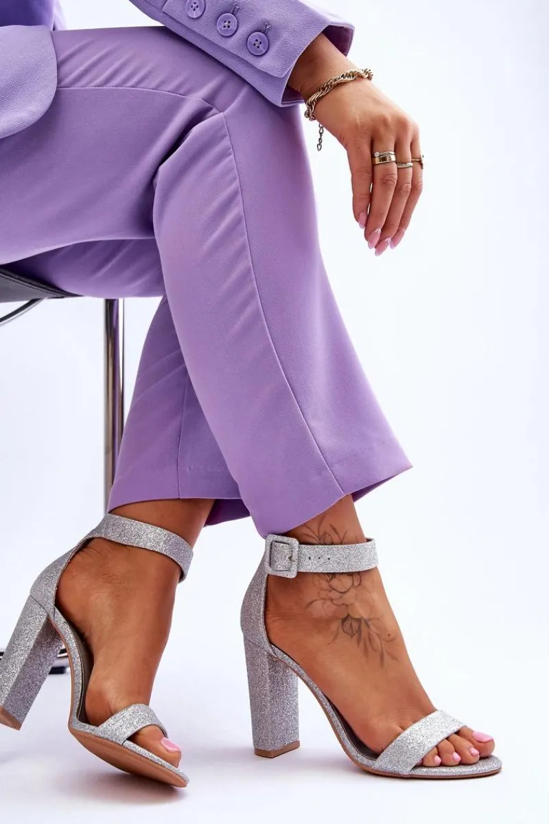 Jeśli znudziły Ci się klasyczne zamszowe sandały na słupku, koniecznie zobacz co dla Ciebie mamy! Przepięknie mieniące się sandały na wysokim słupku. W całości pokryte pięknie mieniącym się brokatem. Zapinane wokół kostki. Przy wyborze rozmiaru prosimy kierować się tabelą rozmiarów