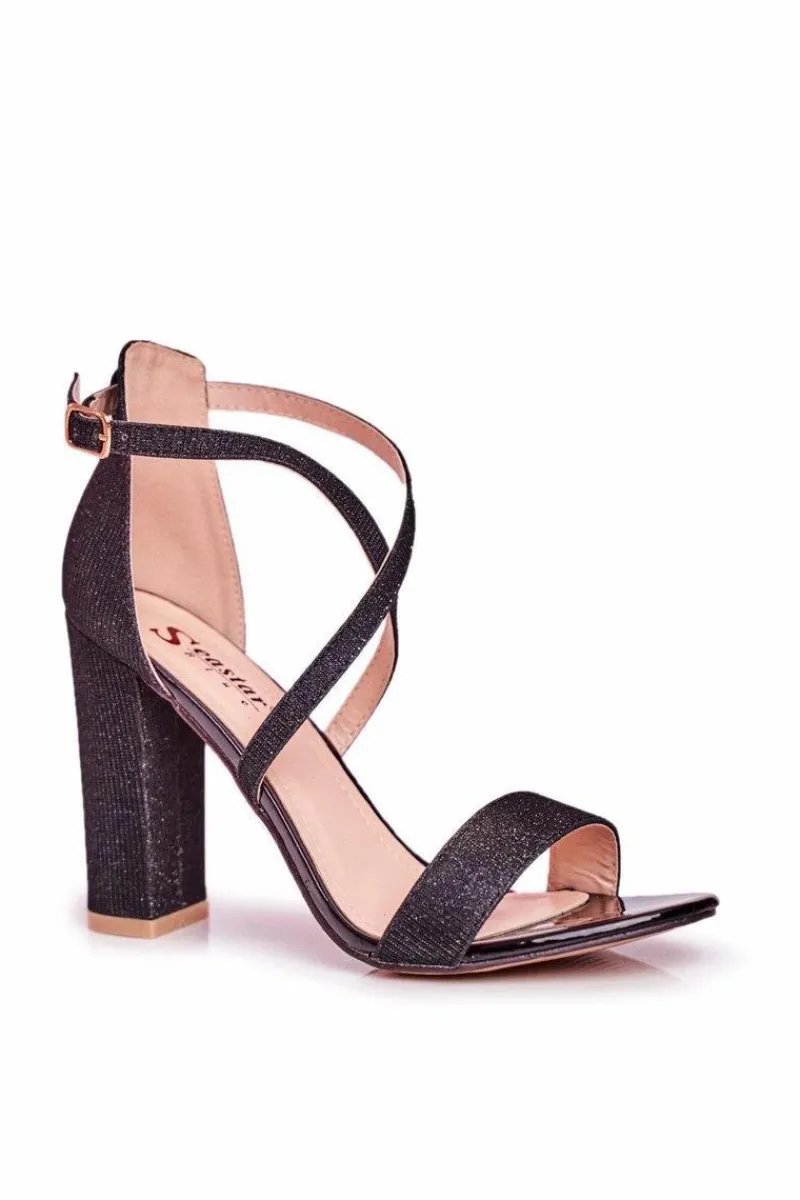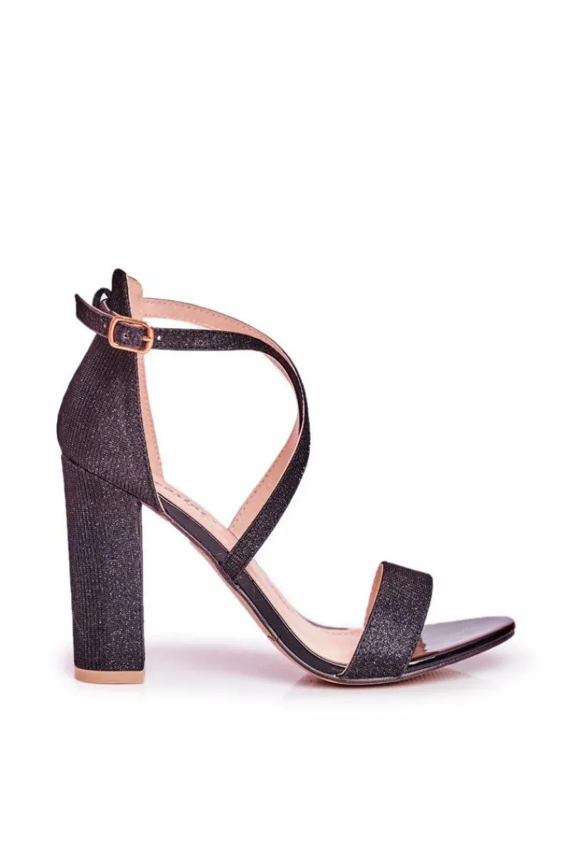 Sandały Na Obcasie>Boto Sandały Damskie Na Słupku Brokatowe Czarne Vivi