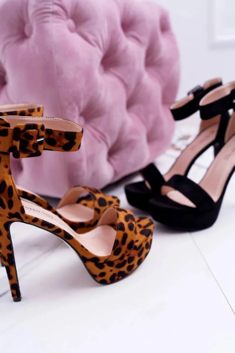 Wygodne, wysokie zamszowe sandały to marzenie każdej kobiety! Wysoka oraz stabilna szpilka zapewni Ci gwarancję dobrego samopoczucia oraz gustownego wyglądu. Ekozamsz z którego zostały wykonane z pewnością sprawi, że zostaniesz zauważona! Model klasycznie zapinany delikatnym paskiem. Wysoka platforma pod palcami przyciągnie spojrzenia innych osób!